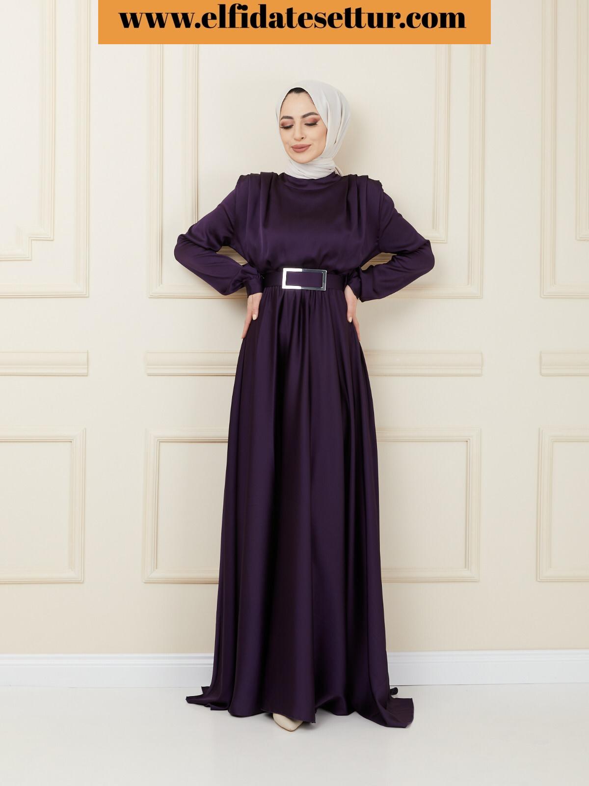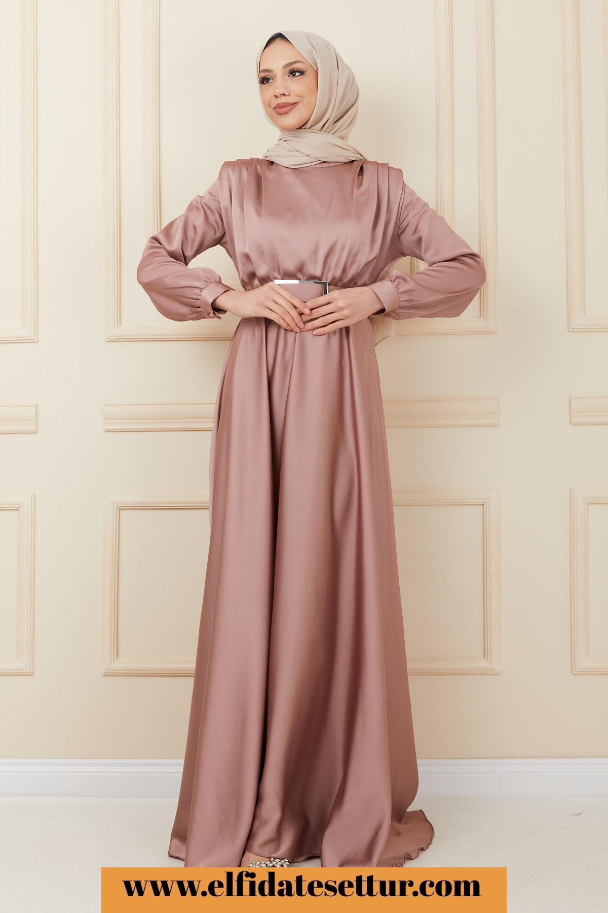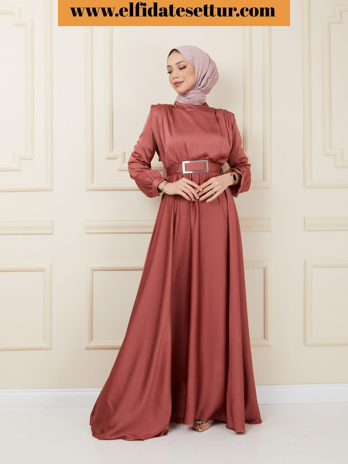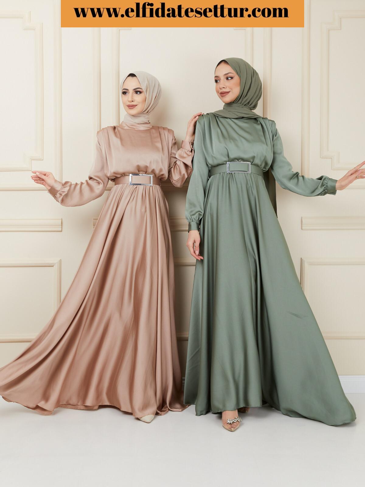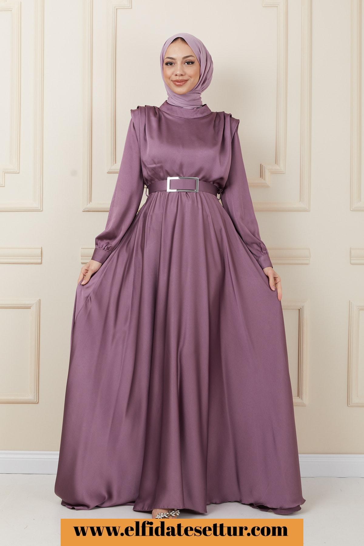 🌷Omuz Vatkalı Mevlana Saten Tesettür Abiye