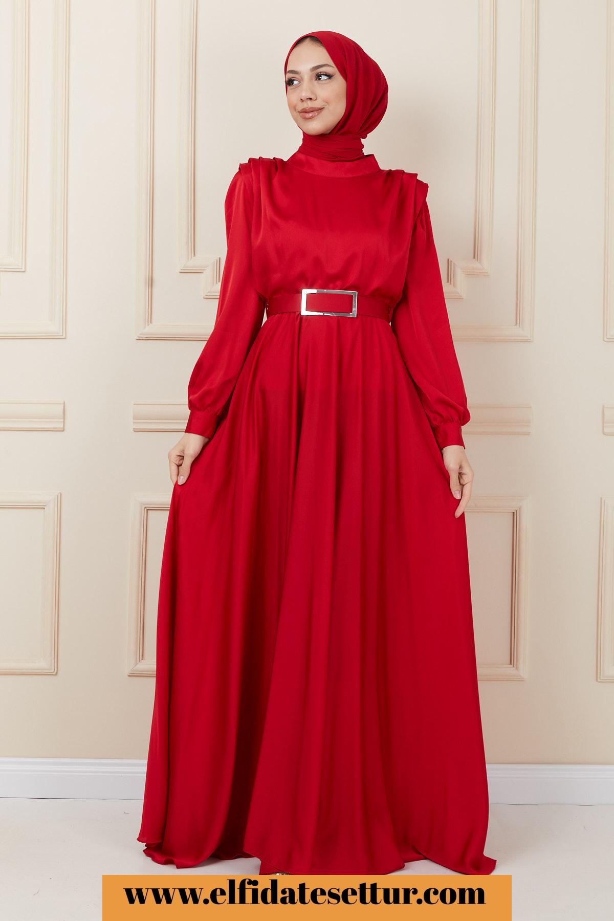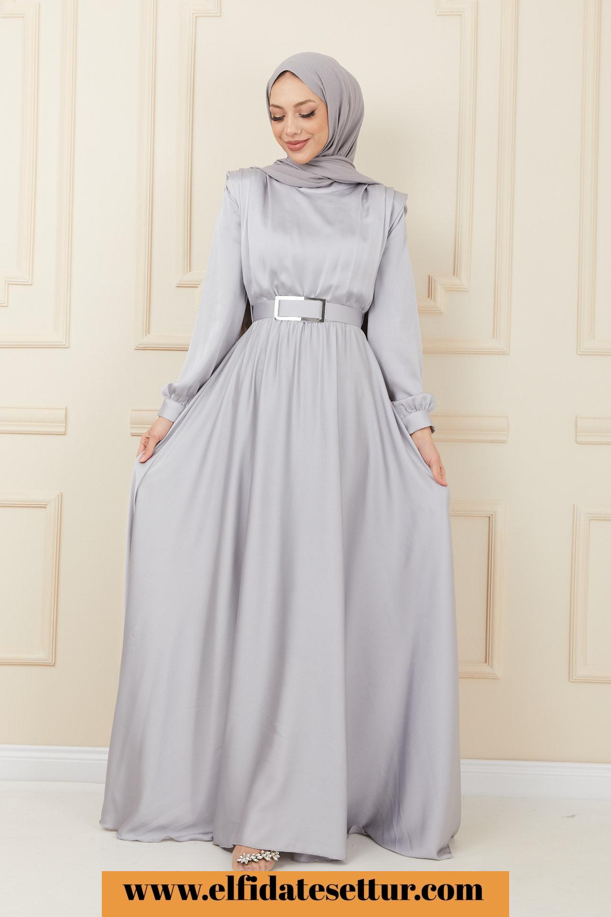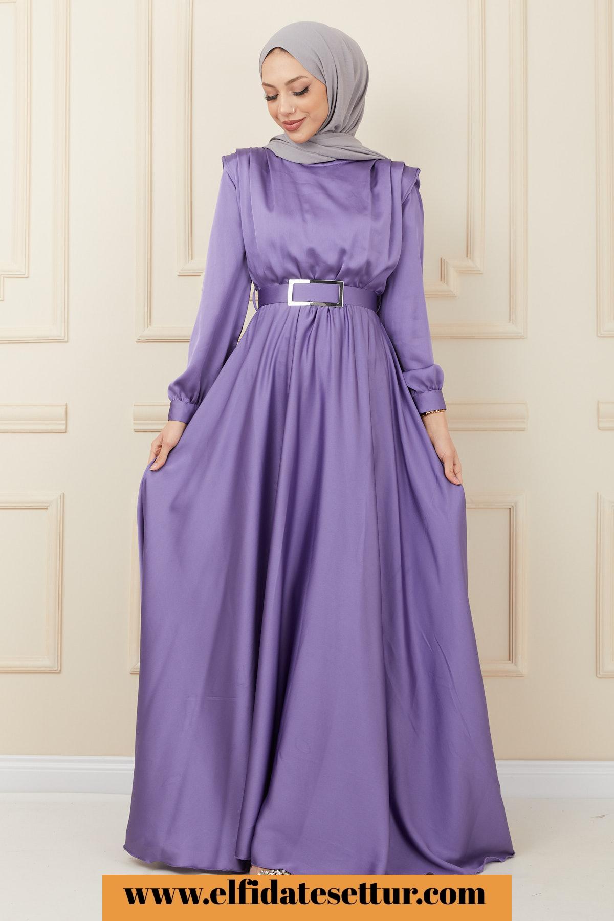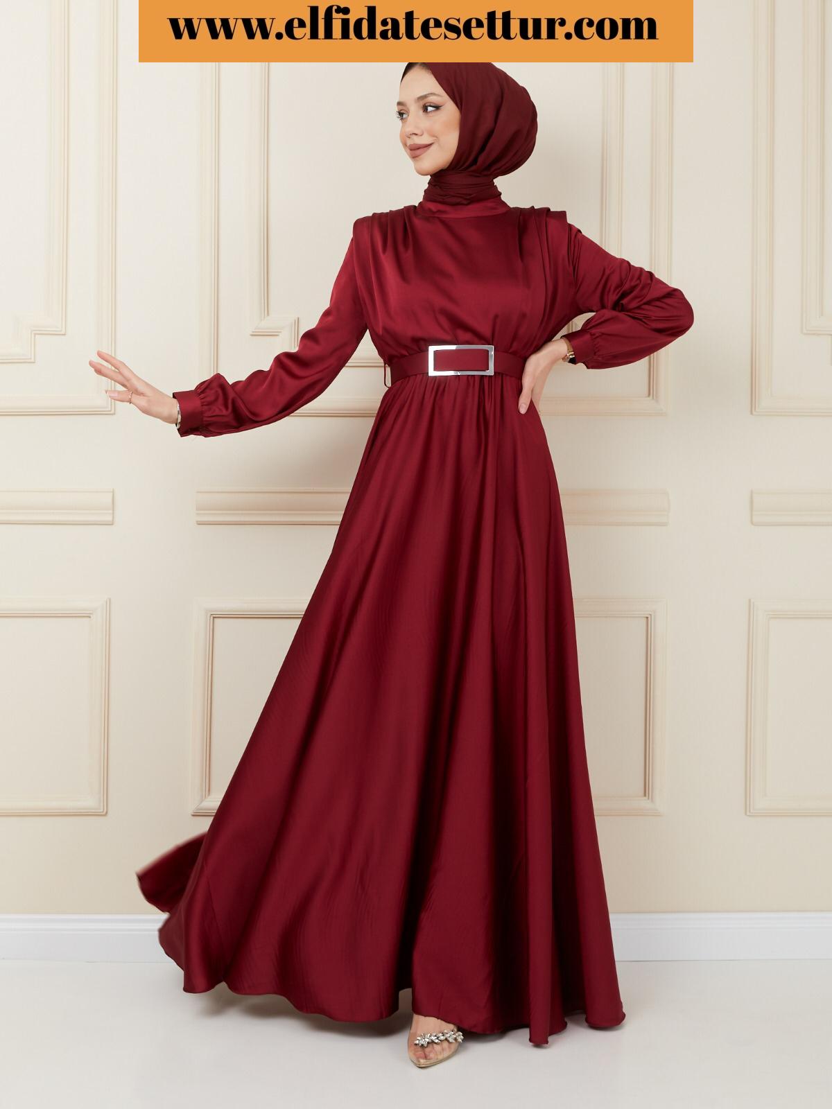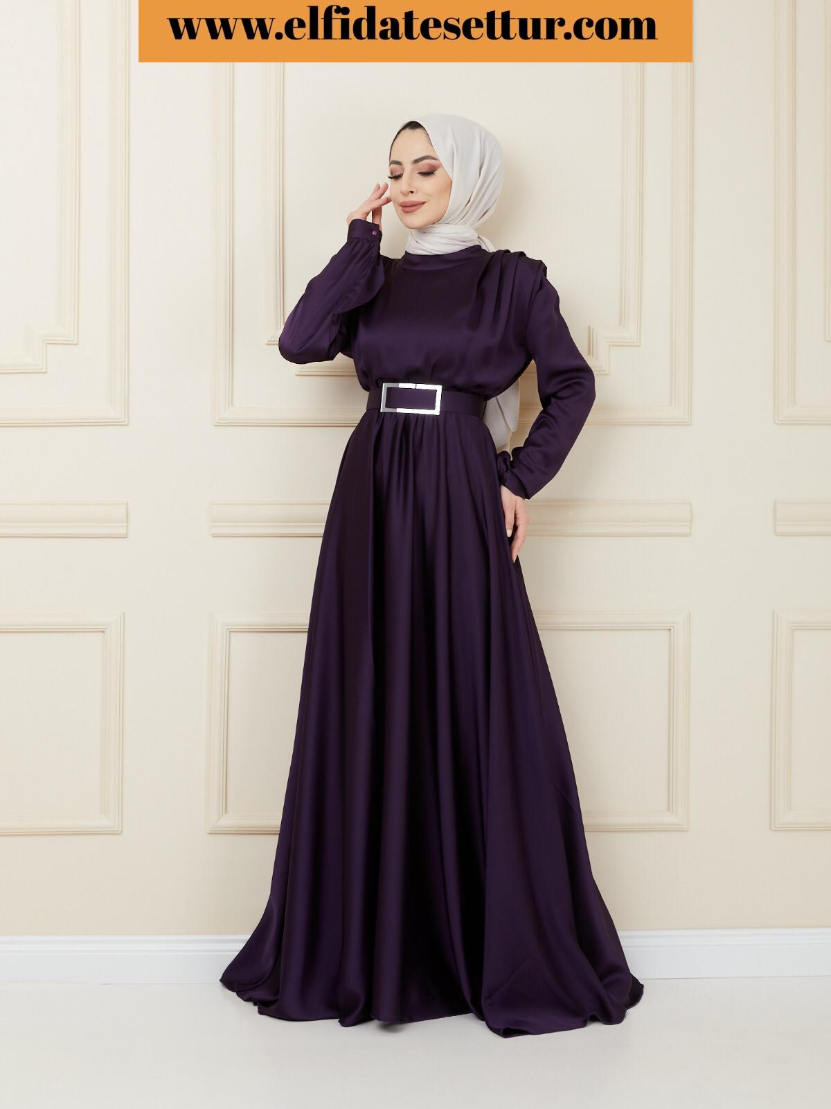 🌷Omuz Vatkalı Mevlana Saten Tesettür Abiye