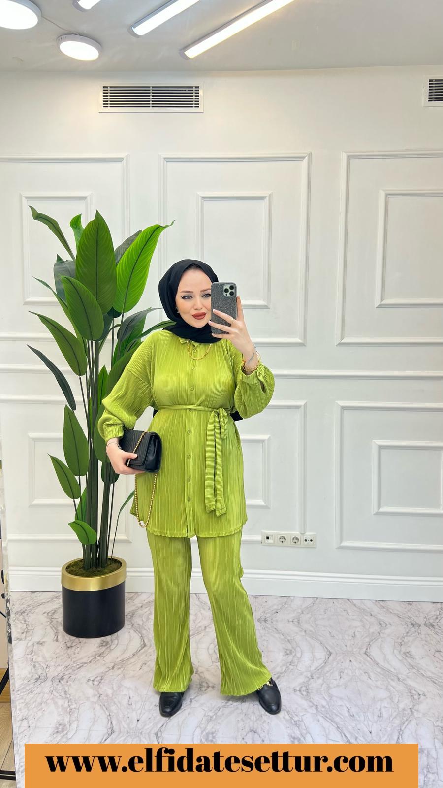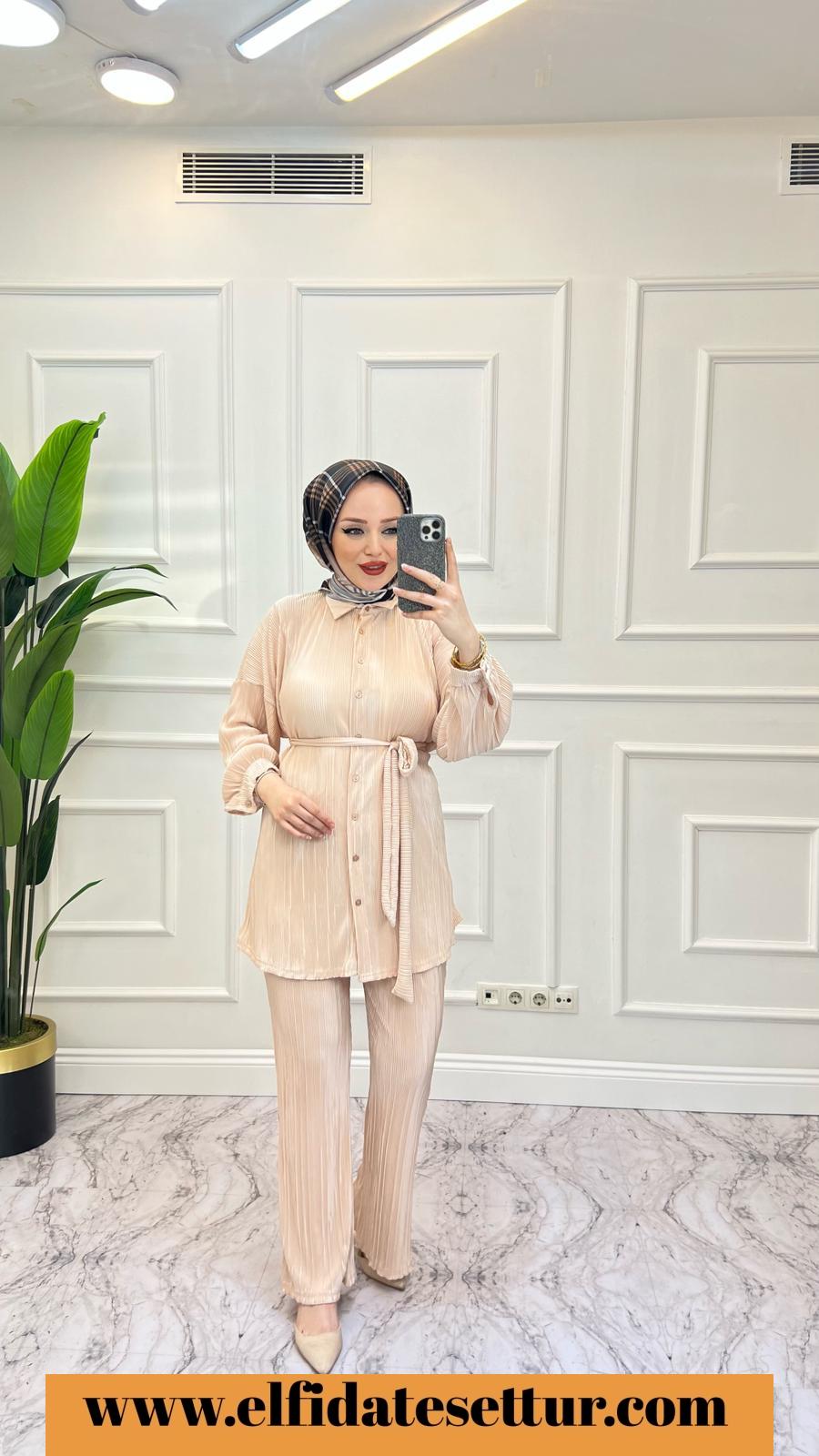 Ürün bilgisi:İtal saten fitilli kumaştır. Gömlek düğmeleri açılabilir ve seyyar kemerlidir. Pantalon bel lastiklidir.