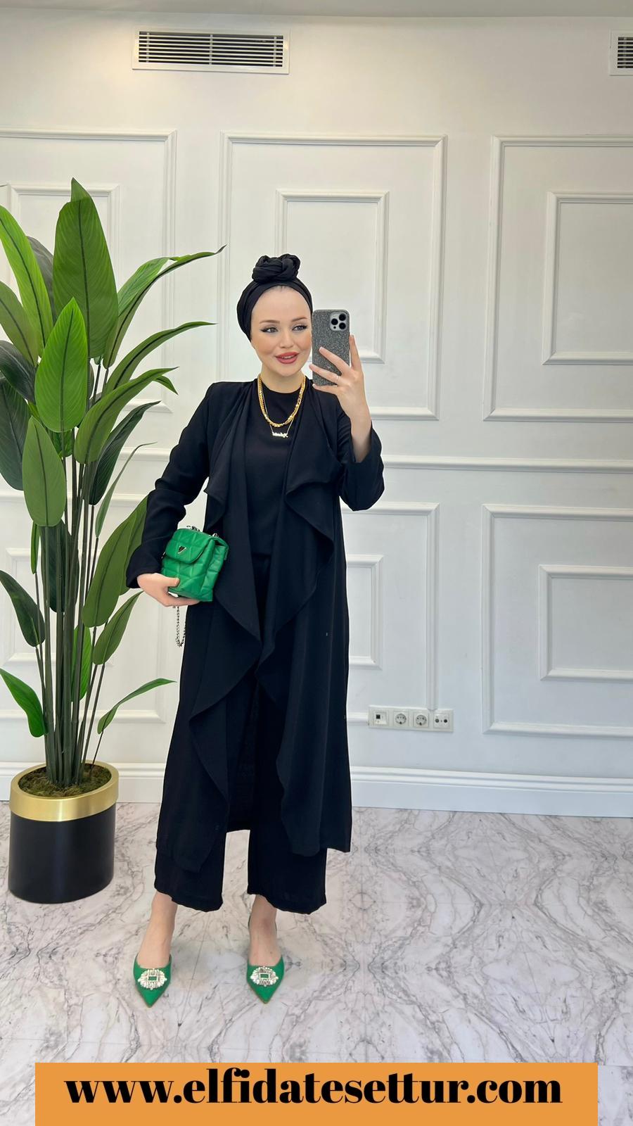 Ürün bilgisi: İtal Krep kumaştır. Kimono , sıfır kol bluz ve yüksek bel pantalondur .