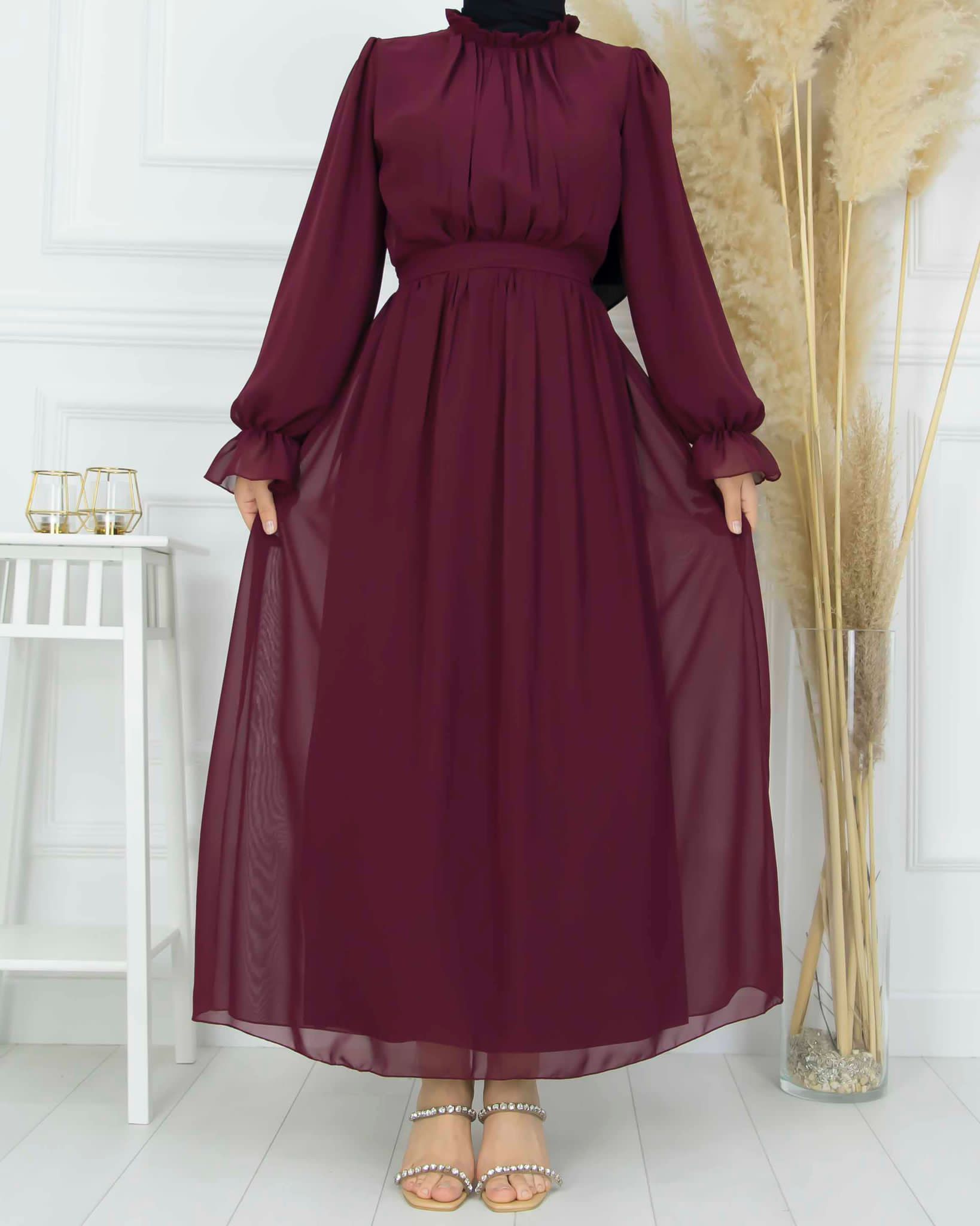 Yazlıktır-Tamamı Astarlıdır-Bel kısmı büzgülüdür-Kendi kumaşından kemerlidir-Sırt kısmında fermuar vardır-Bilek kısmı lastiklidir-yakası fırfırlıdır
