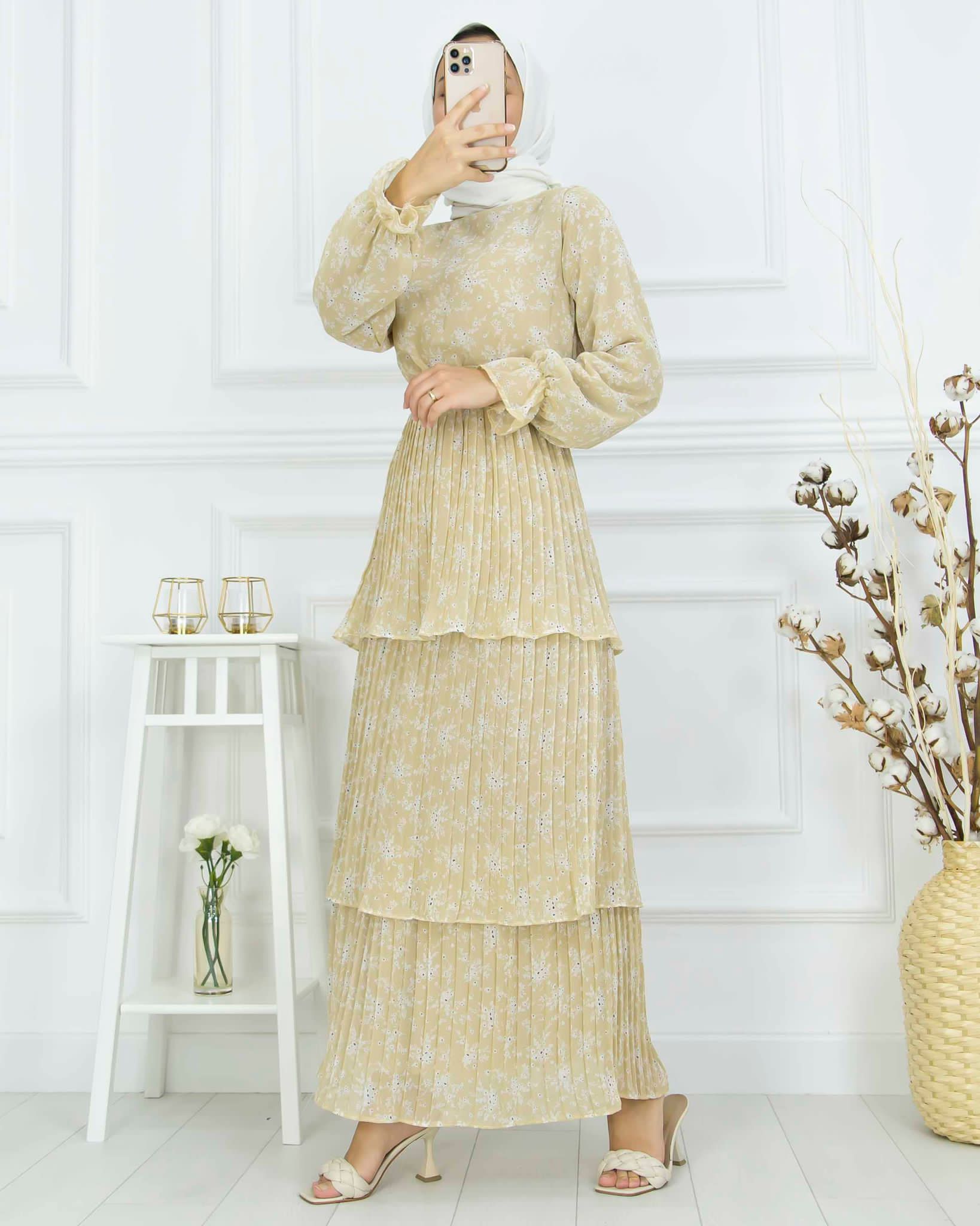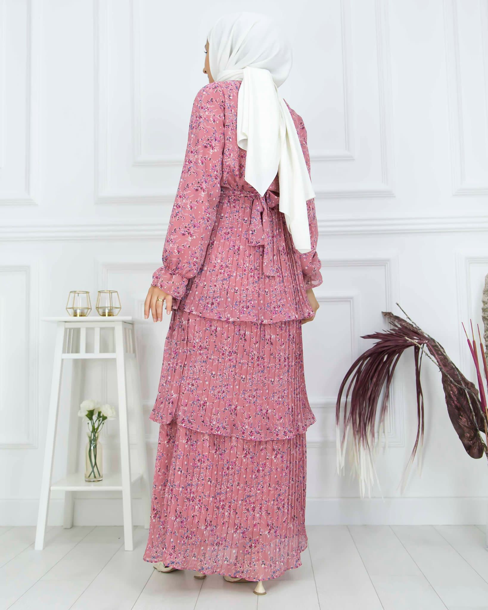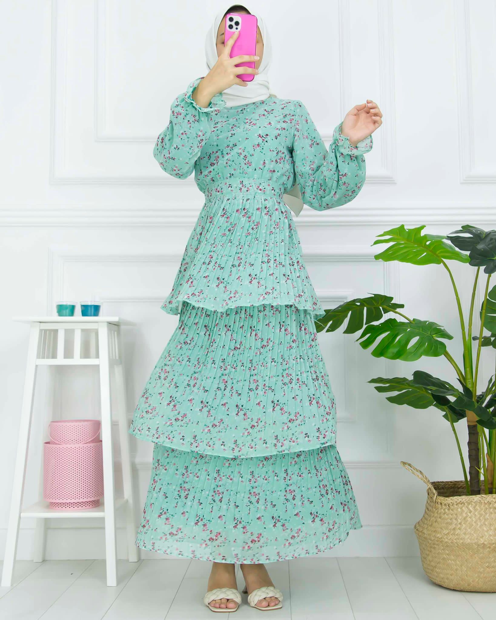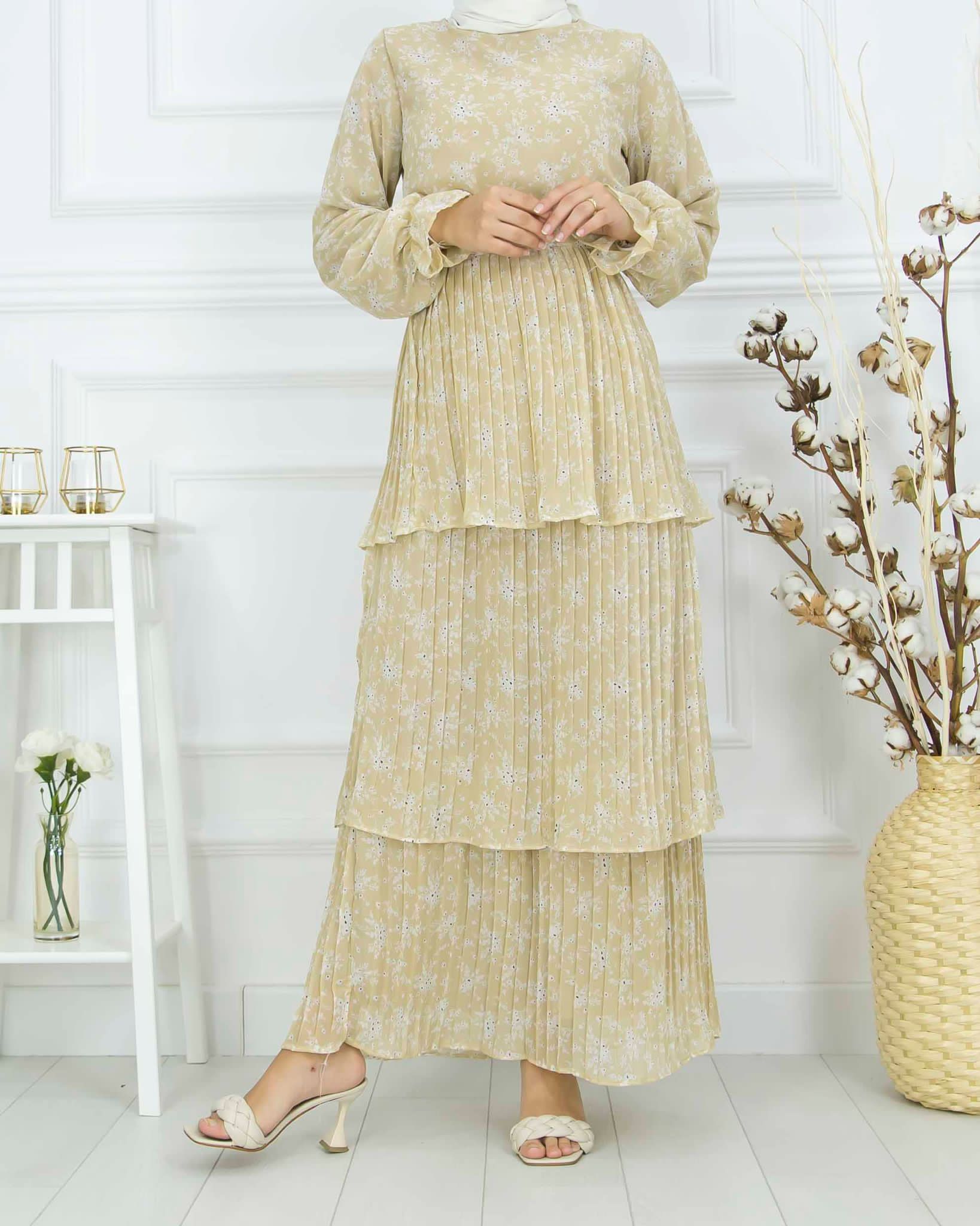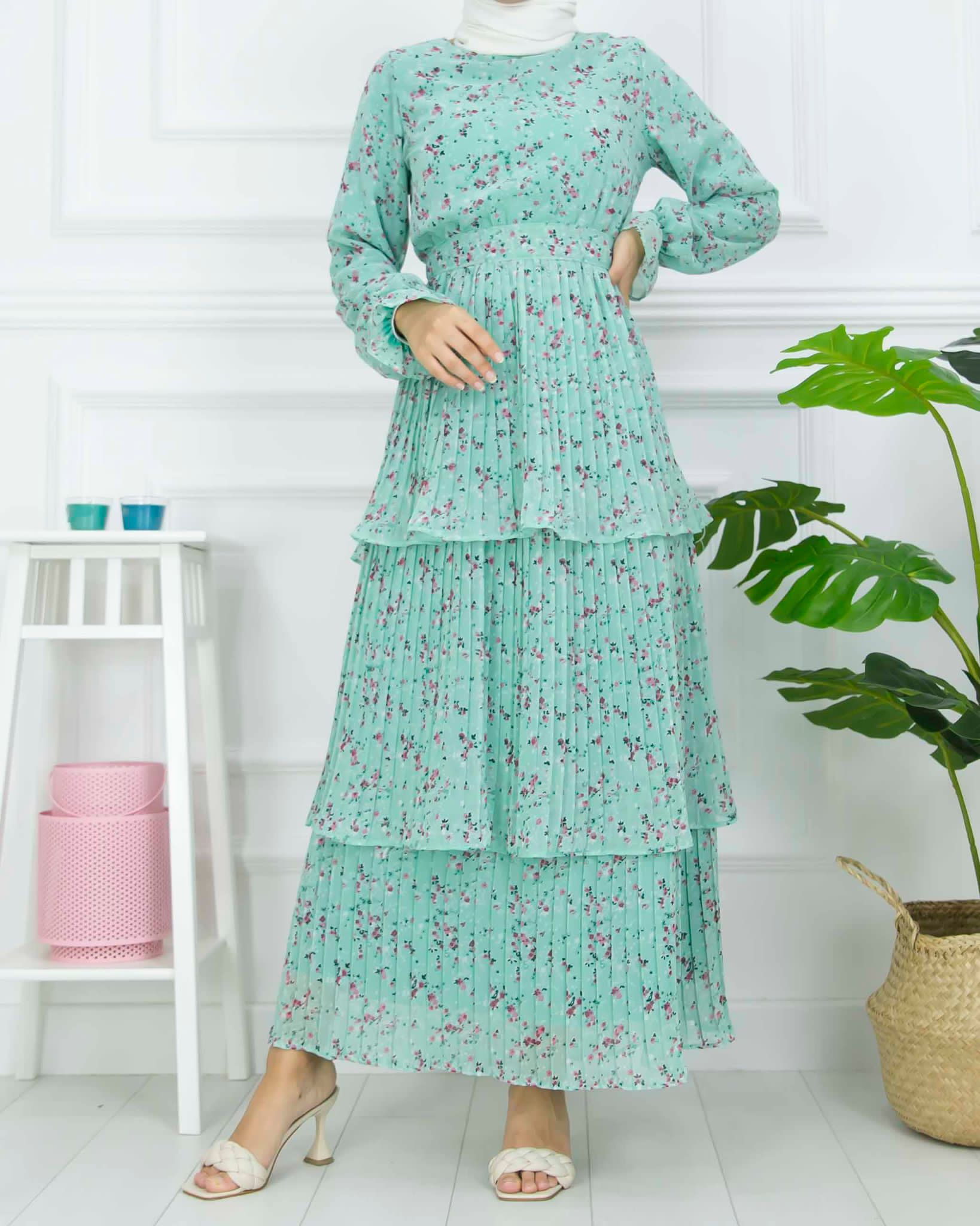 Yazlıktır-Kol dahil astarlıdır-Bilek ve bel kısmı lastiklidir-etek kısmı kat kat ve pliselidir-Enseden düğmelidir