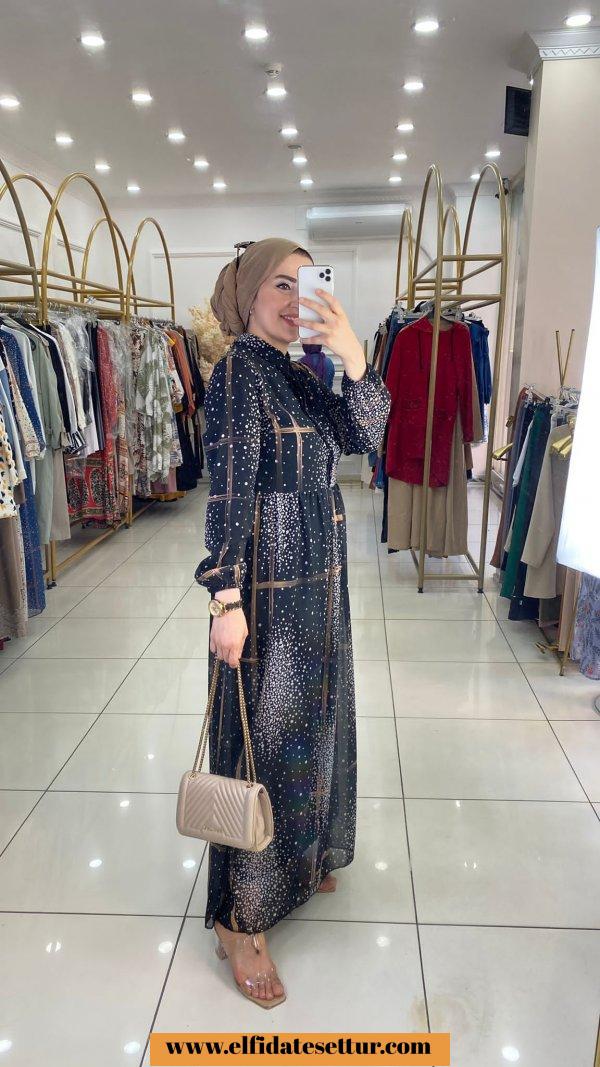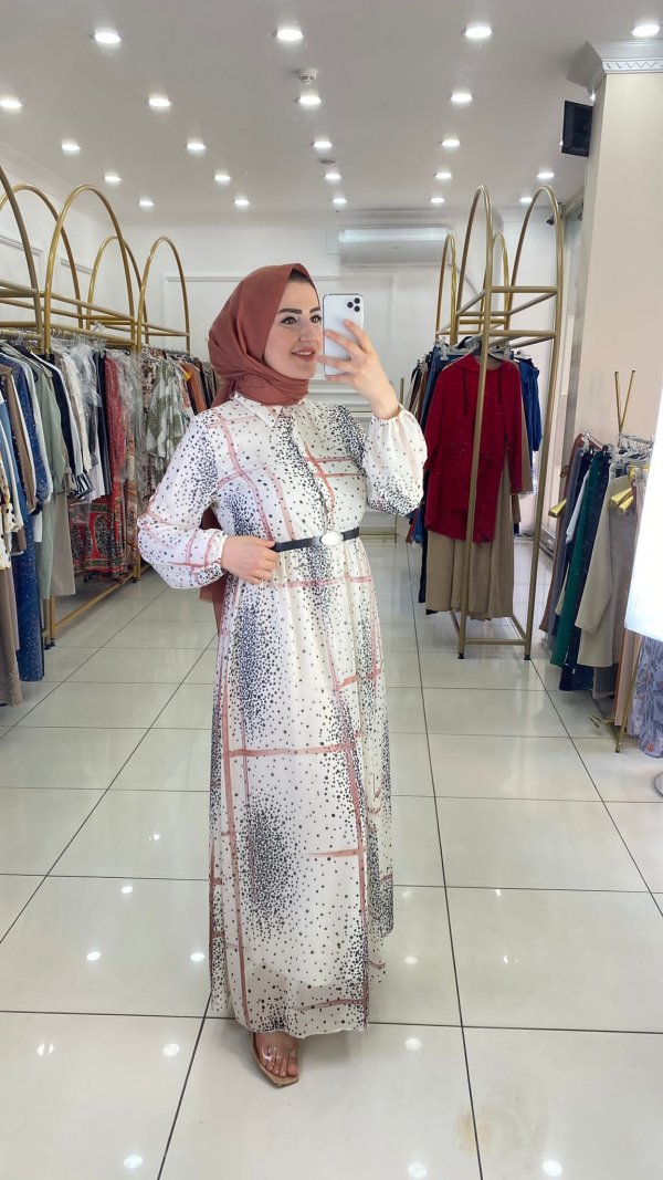 🌷Kemer Hediyeli Elbise Şifon Krep Kumaş Tesettür Tam Boy Elbise