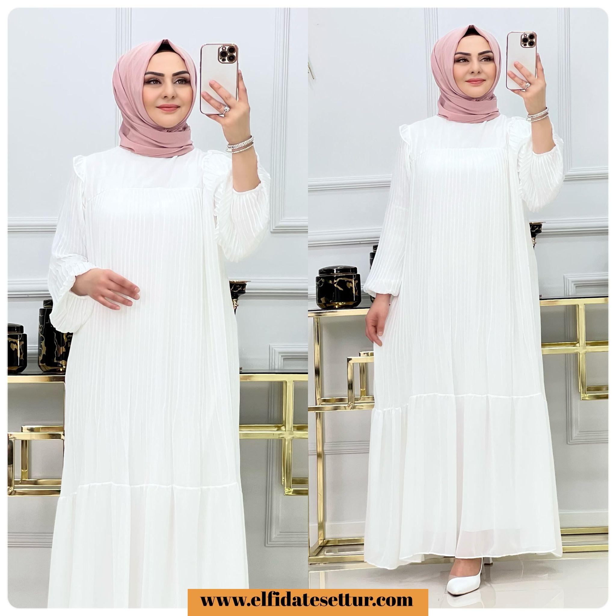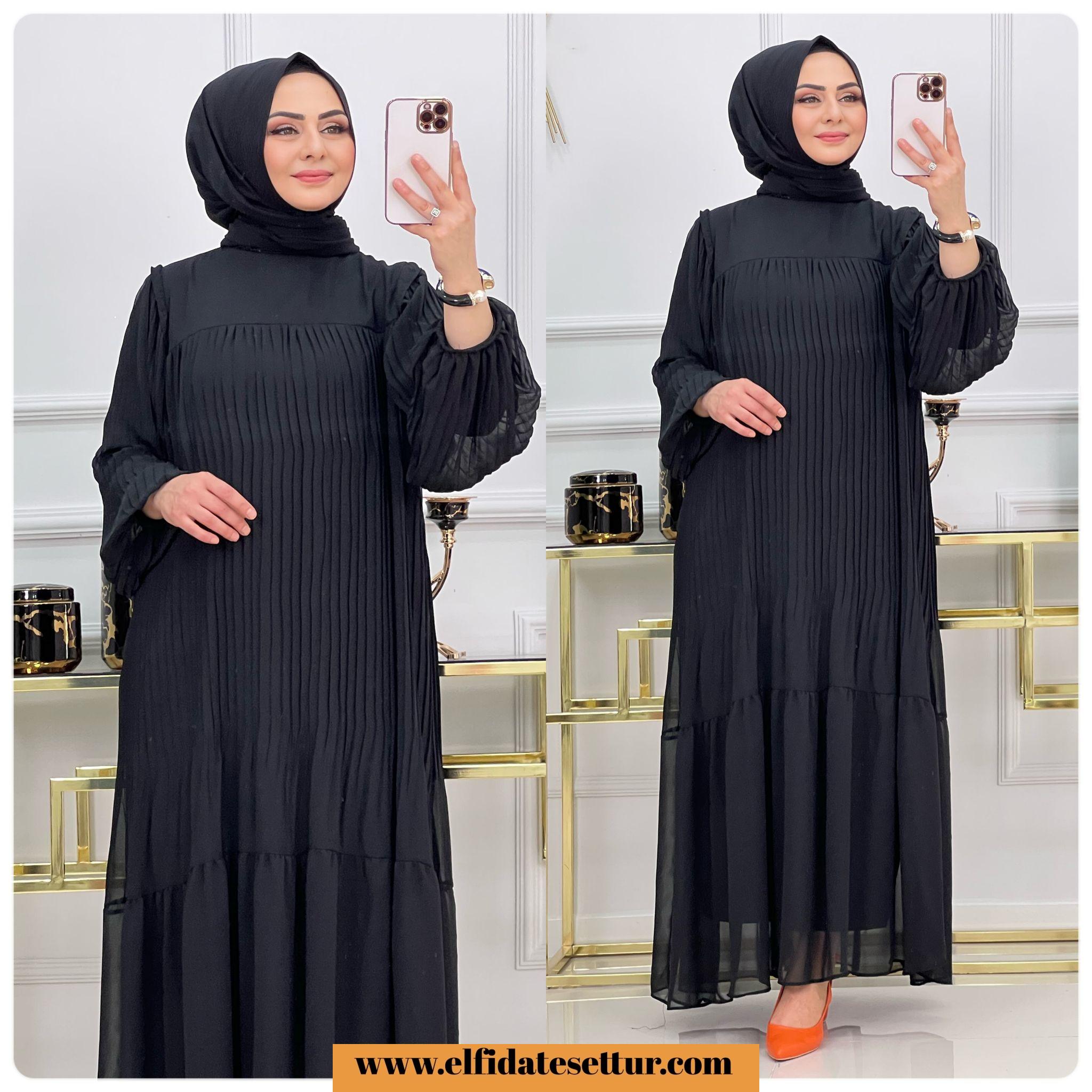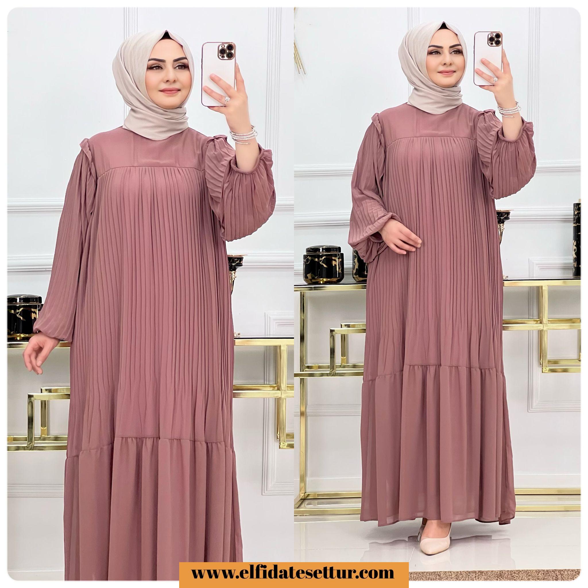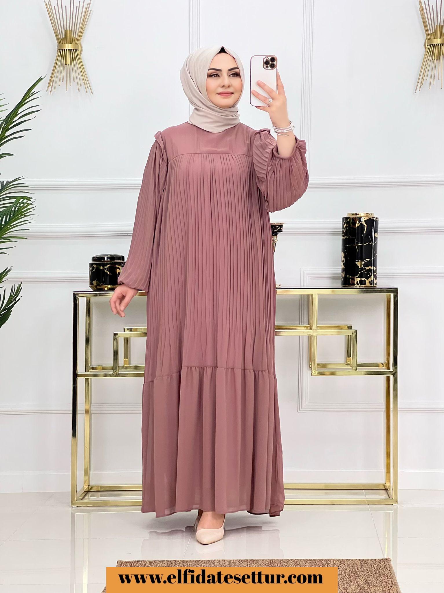 Piliseli şifon kumaş Pelin elbise