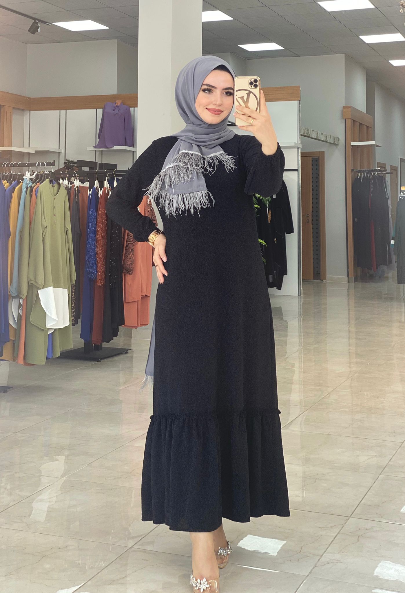 ✅Özel günlerinizin kurtarıcısı olcak sim detaylı kolları düz elbise