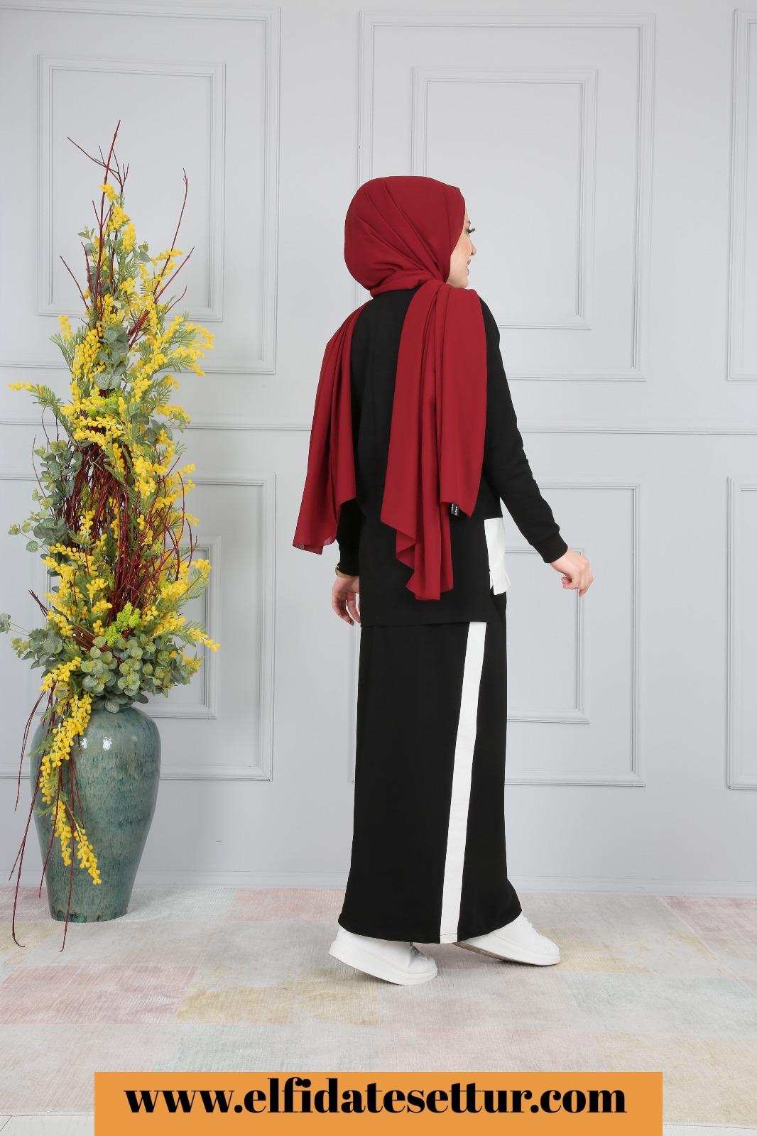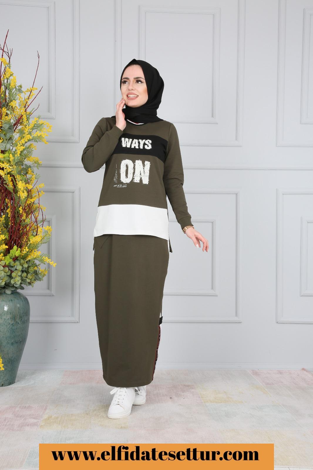 Tam kalıp birebir bedendir. Mevsimliktir. Etek beli lastiklidir. Etek de iki adet cep vardır. Üst tunik bisiklet yakalıdır. Hafif esneme payı vardır.