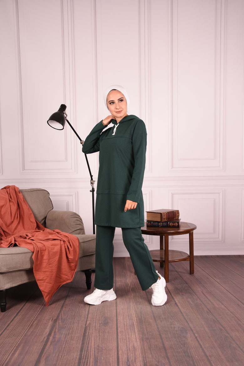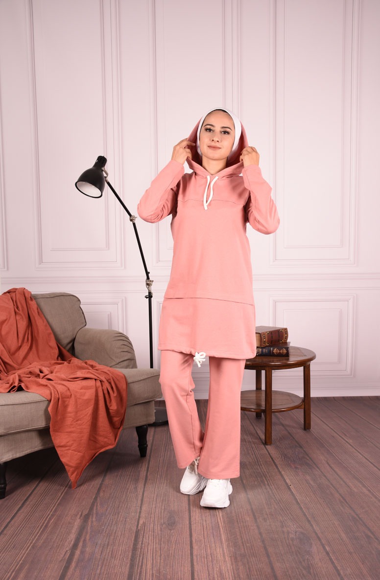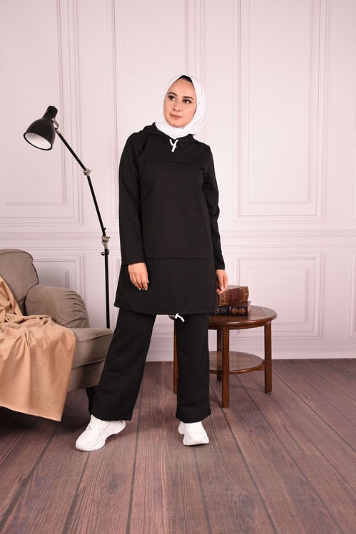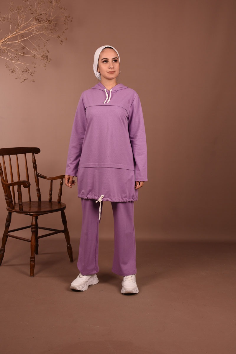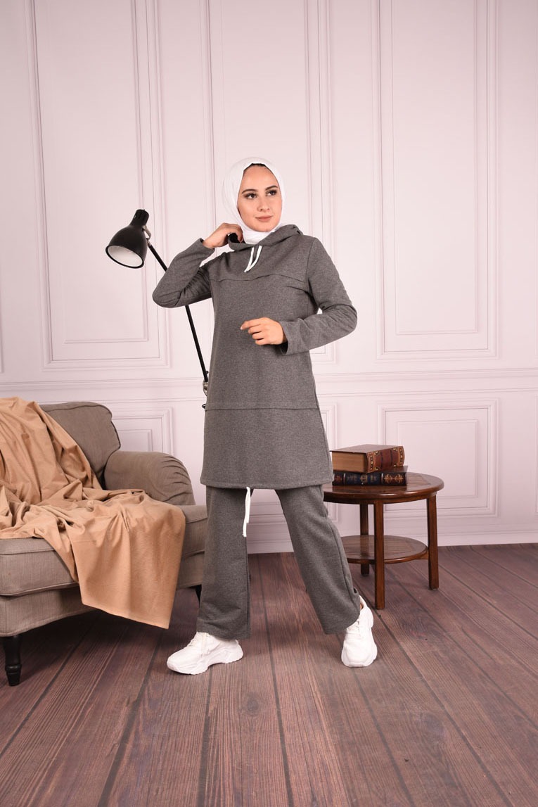 Kapüşonlu Bağcık Detaylı İkili Tesettür Takım