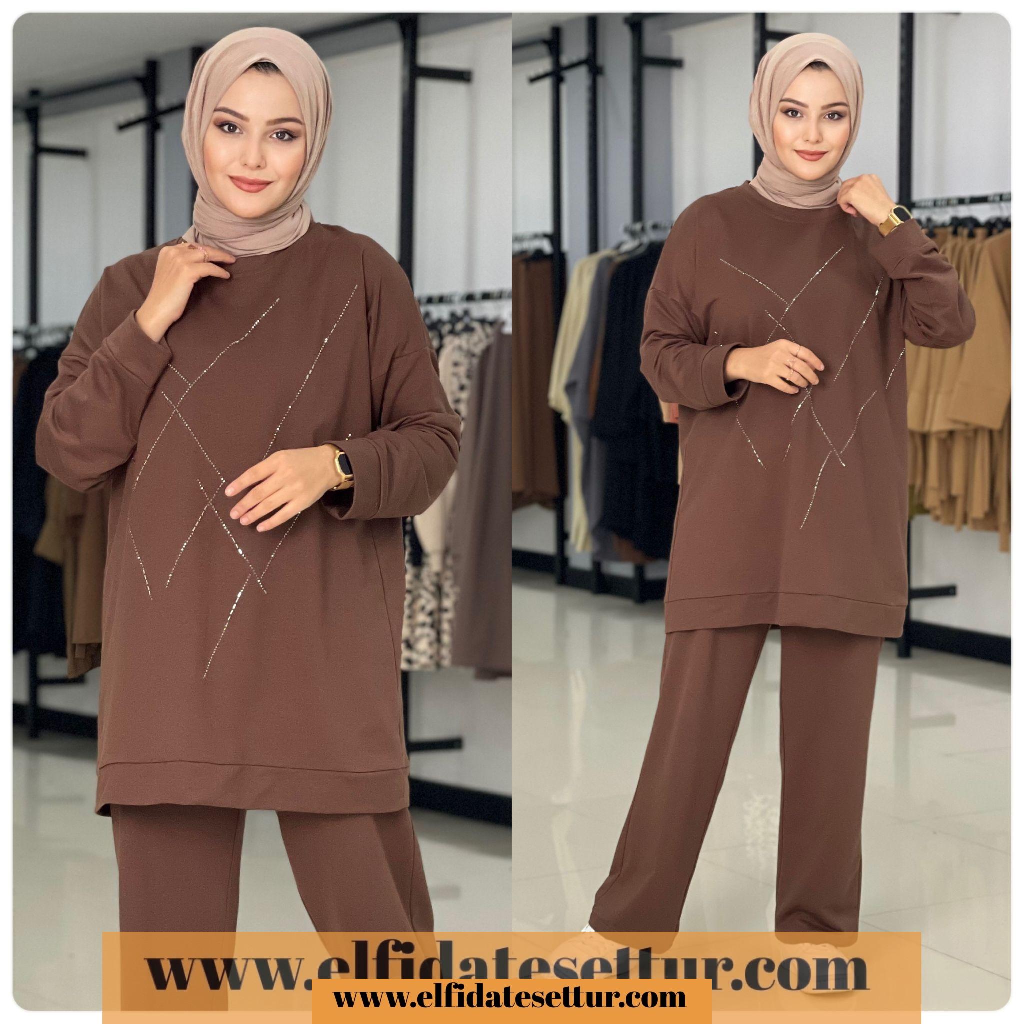 İki iplik örme kumaş taş baskılı İpek takımımız muhteşem fiyatıyla stoklarda