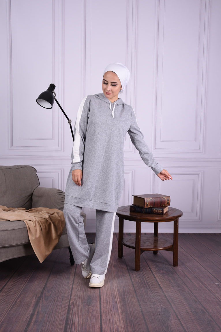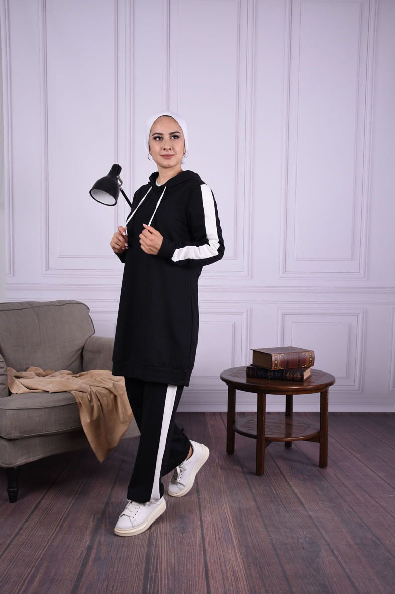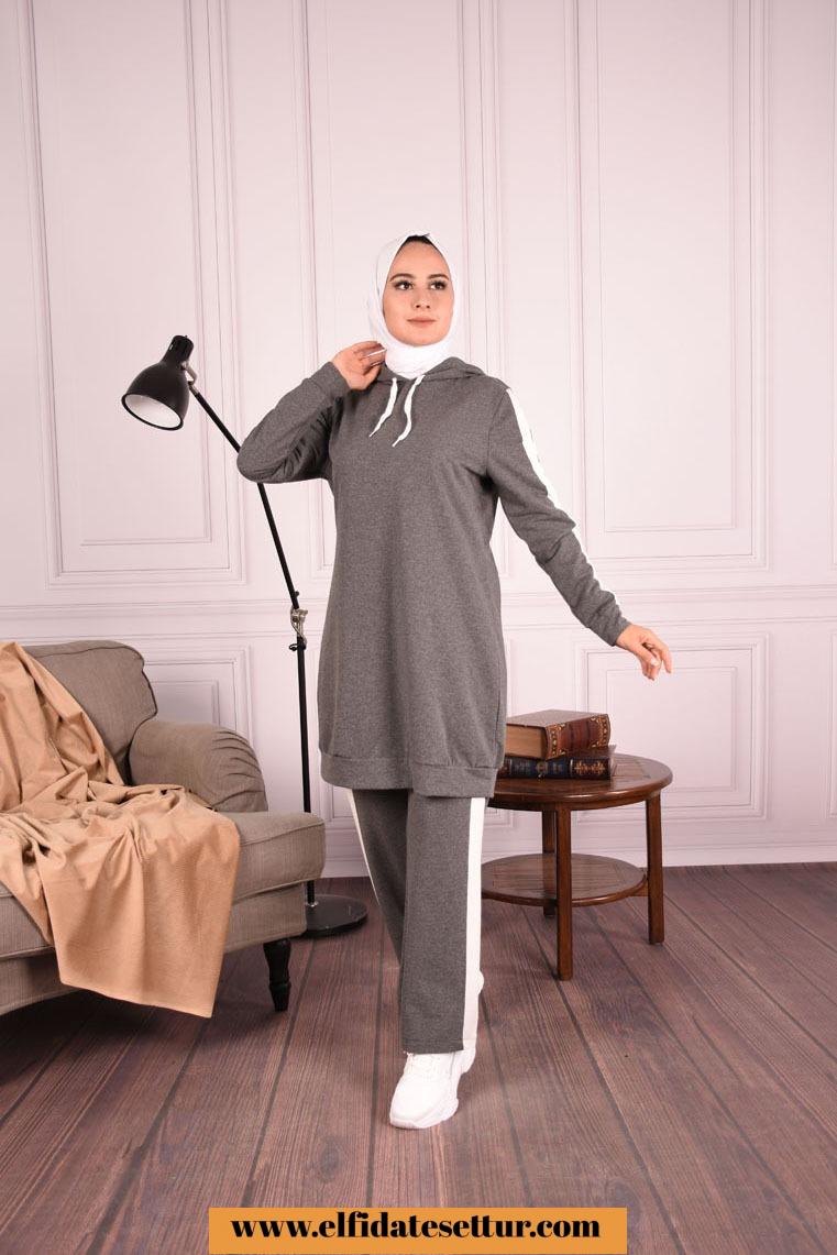 Kapüşonlu,Şerit Detaylı İkili Tesettür Takımımız 4 rengi ile sizlerle!