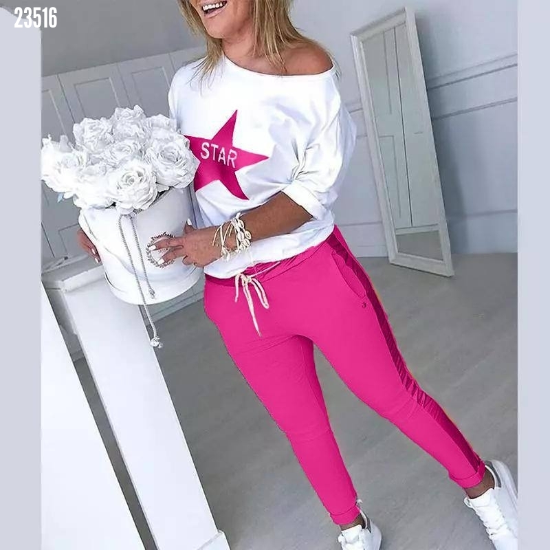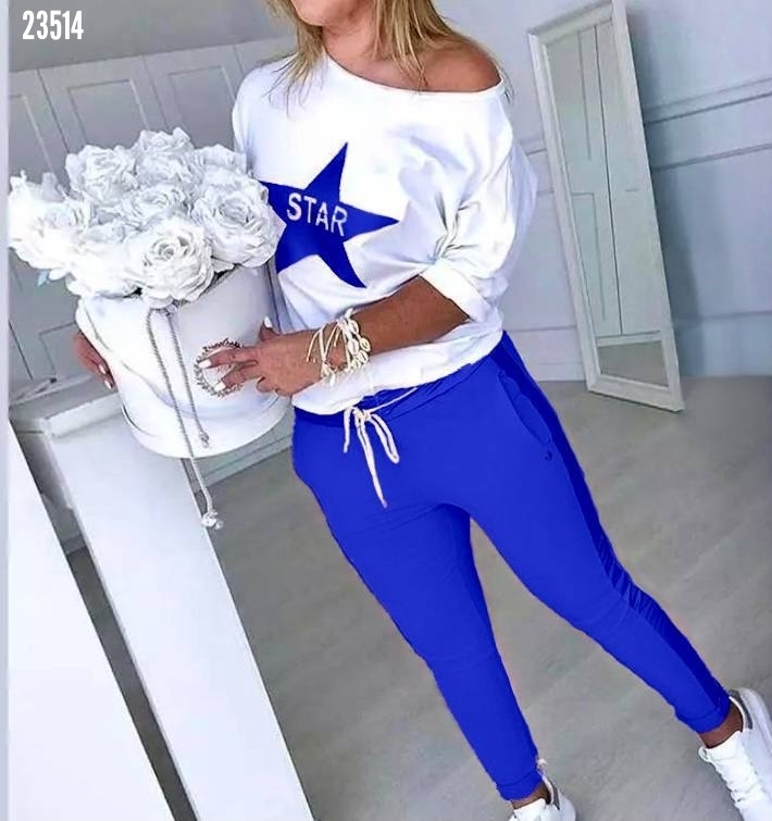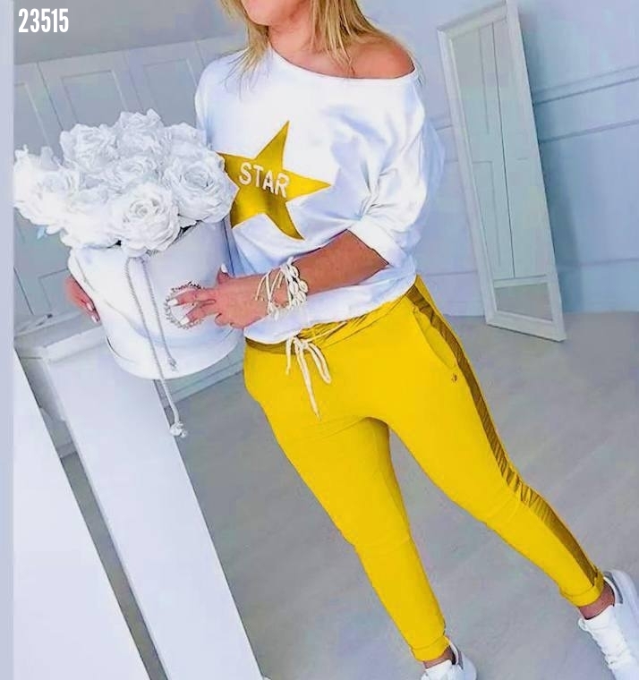 ❤️Üst Uzun Kollu Varak Star Baskılı Janes İki İplik Kumaş Takım