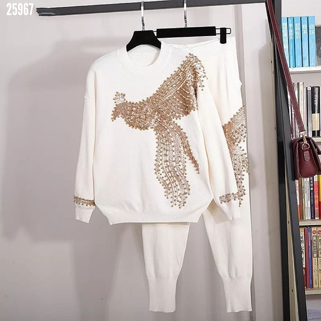 ❤Tavus Kuşu İşlemeli Janes İki İplik Kumaş Takım