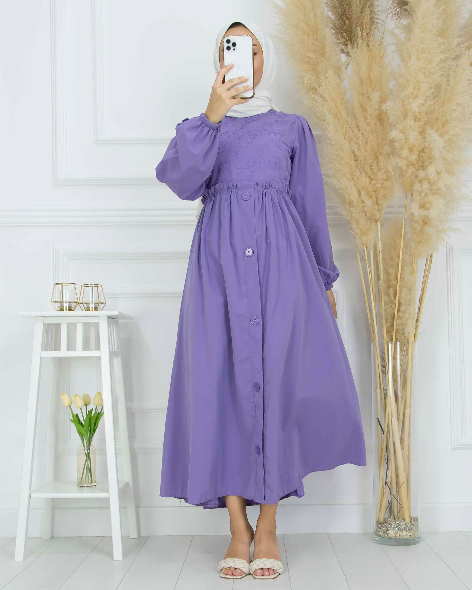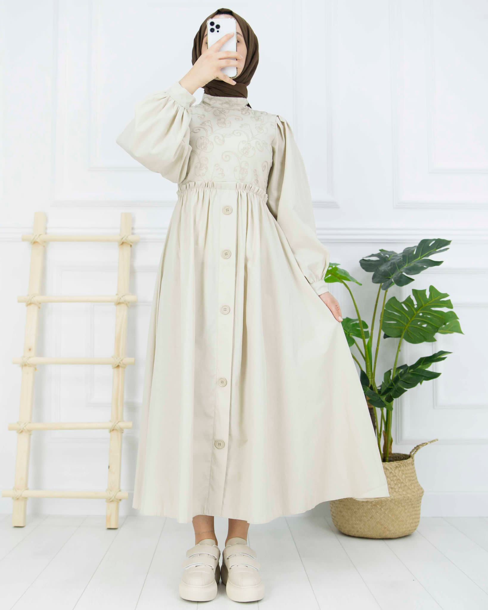 Yazlıktır-Ön ve arka kısmında nakış detayları vardır-Balon Koldur-Ön kısmındaki düğmeler açılmaz-Enseden fermuarlıdır-Hakim yakadır
