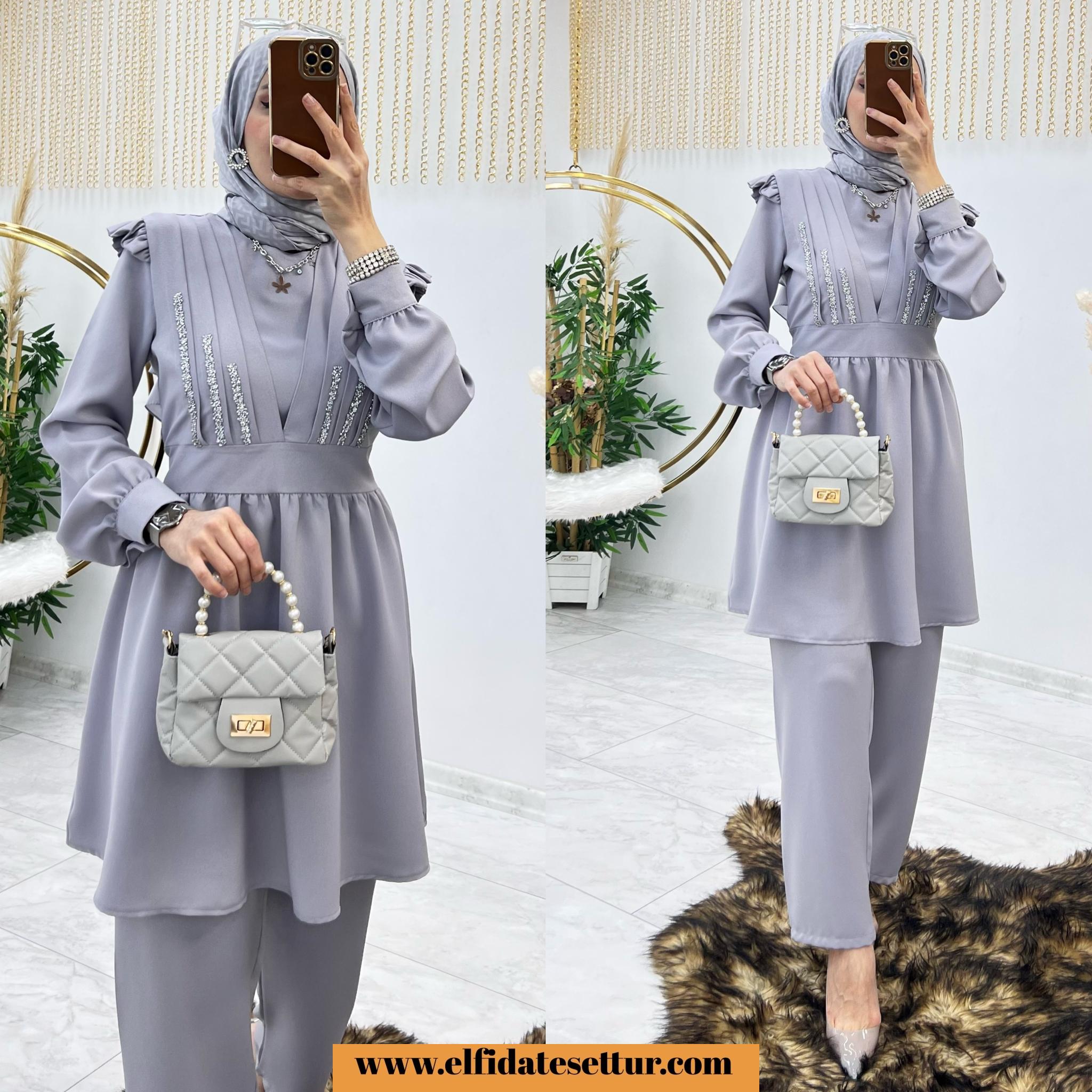 Tesettür ender takım - Elfida Tesettür Elbise Modelleri Kadın Giyim Yeni Moda Tunik Takım