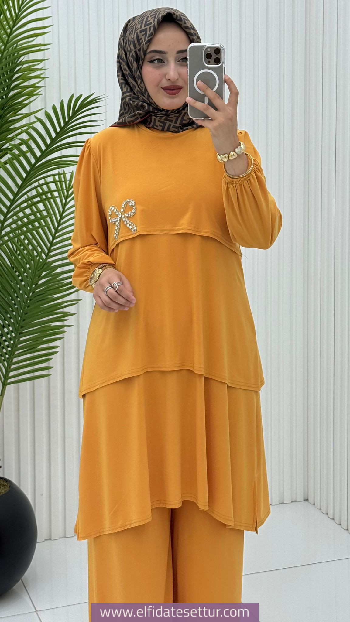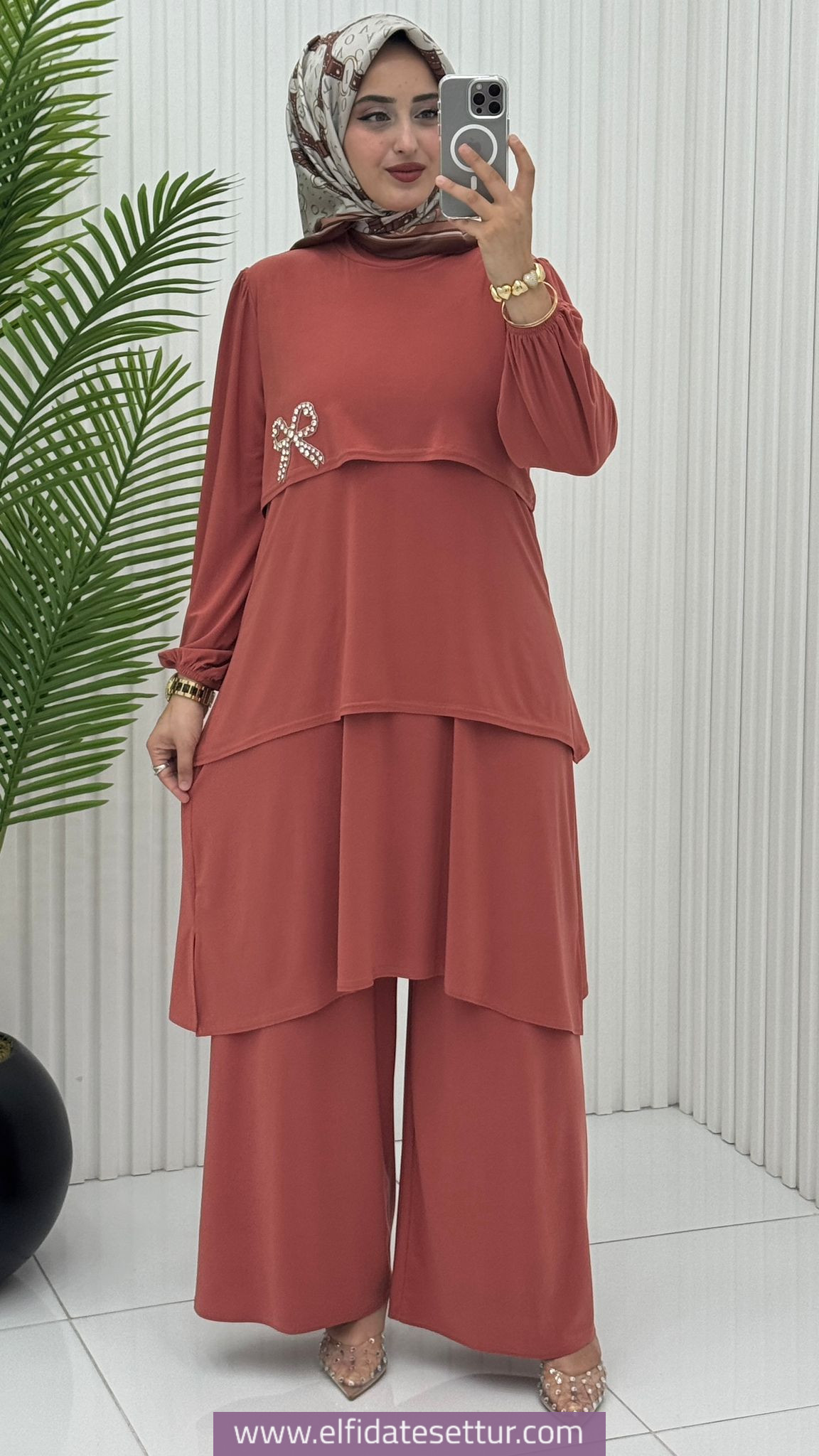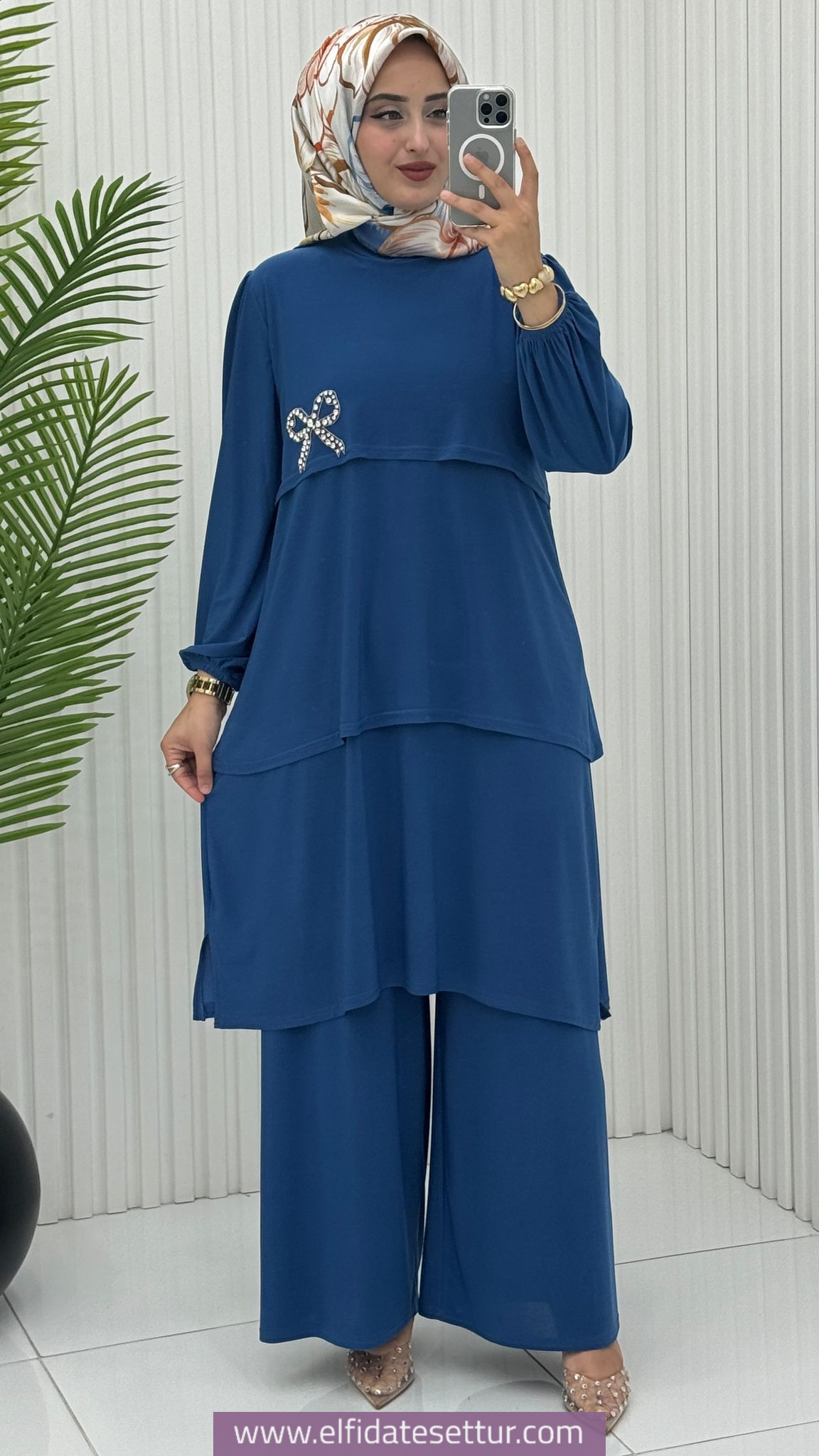 Zarif fiyonk detayıyla fark yaratan bu ikili takım rengarenk renkleri ile satışta