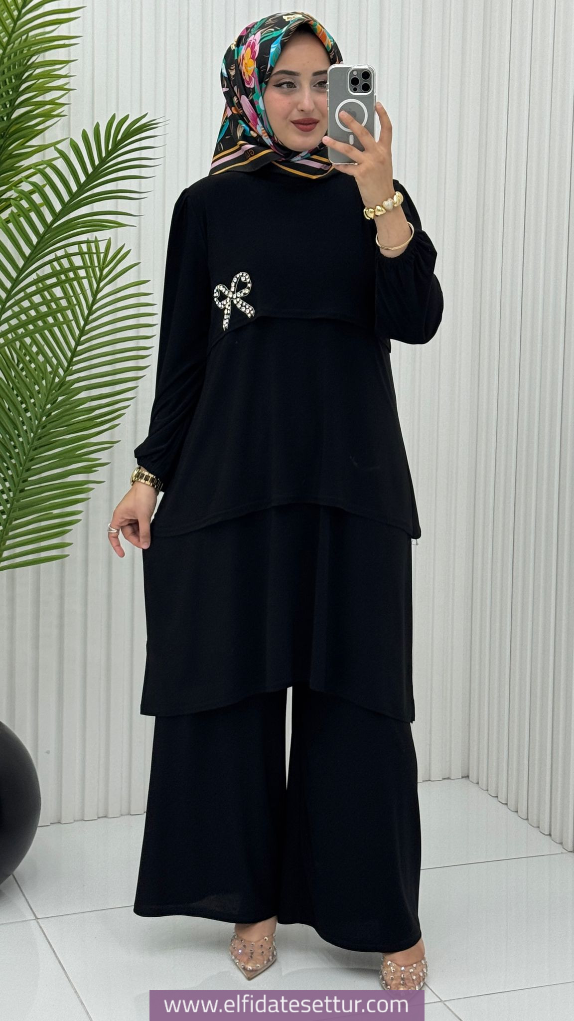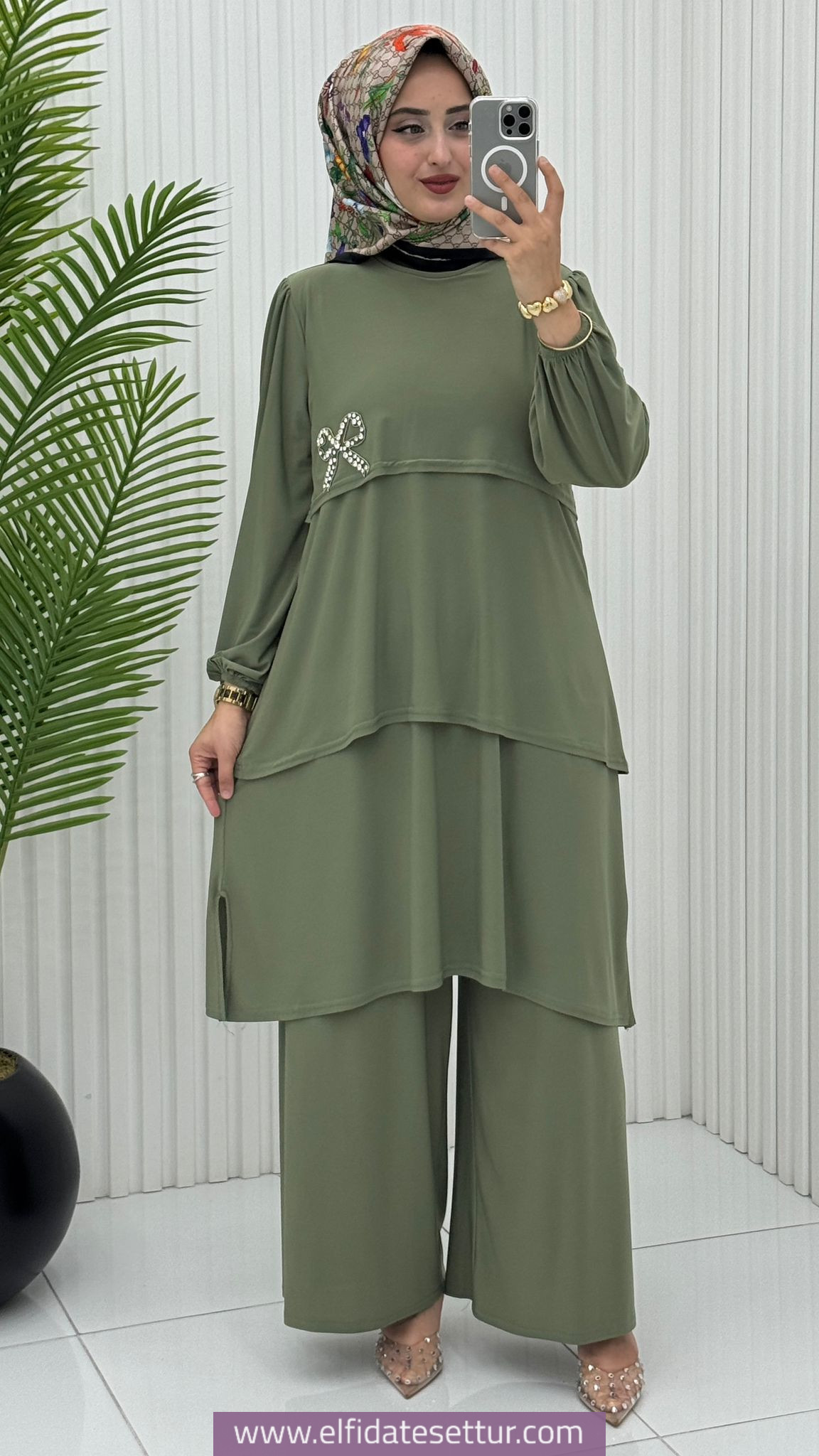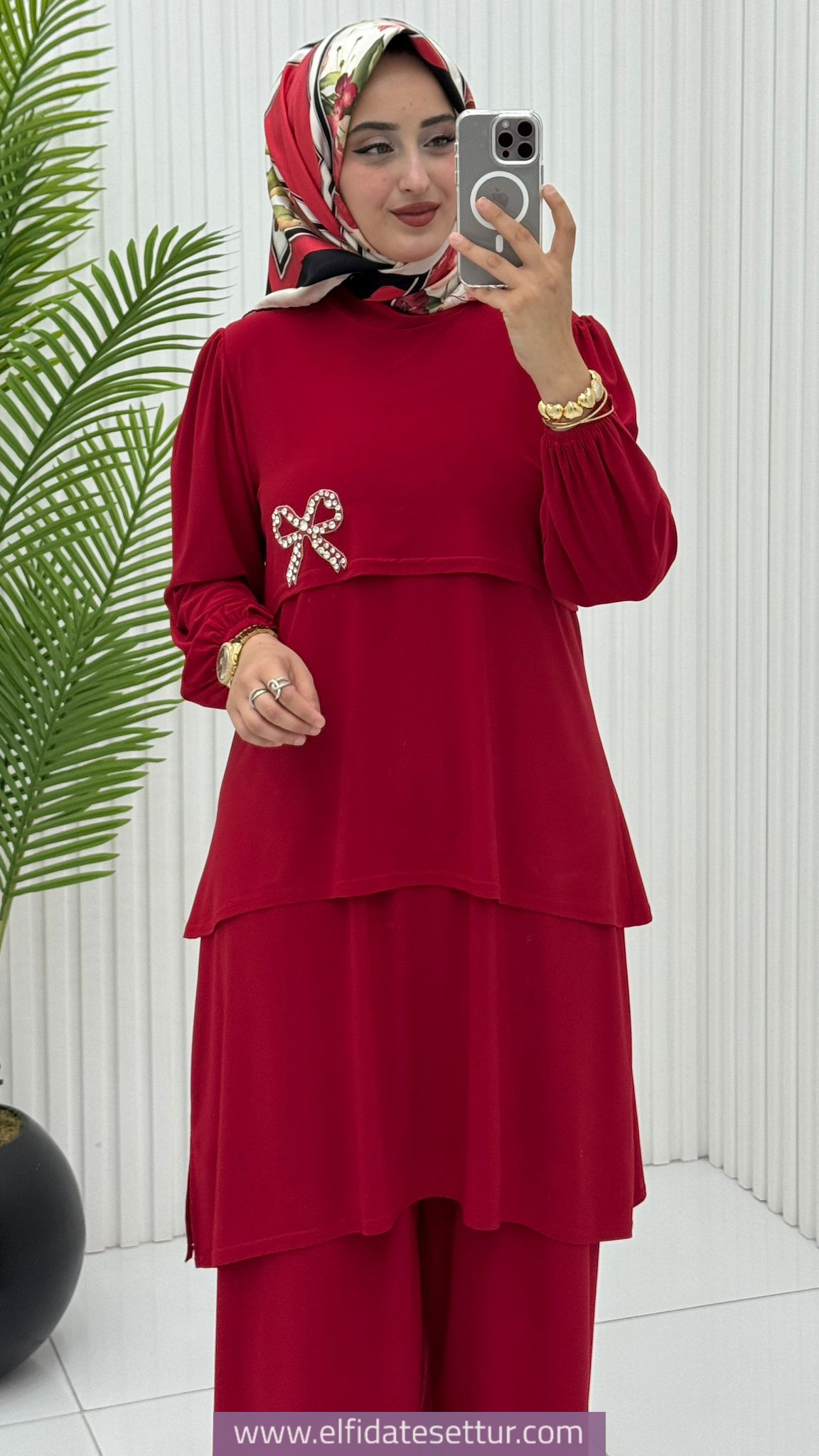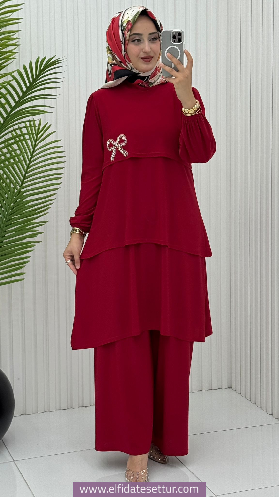 Zarif fiyonk detayıyla fark yaratan bu ikili takım rengarenk renkleri ile satışta
