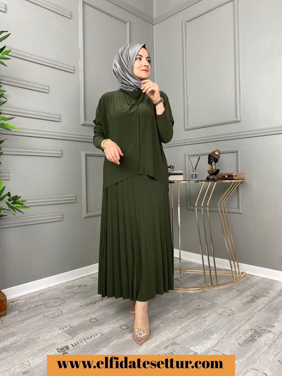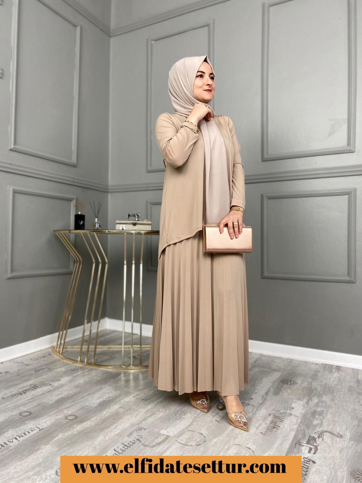 Lazer kesim degaje yaka etekli takımımız en güzel renkleriyle stoklarımızda
