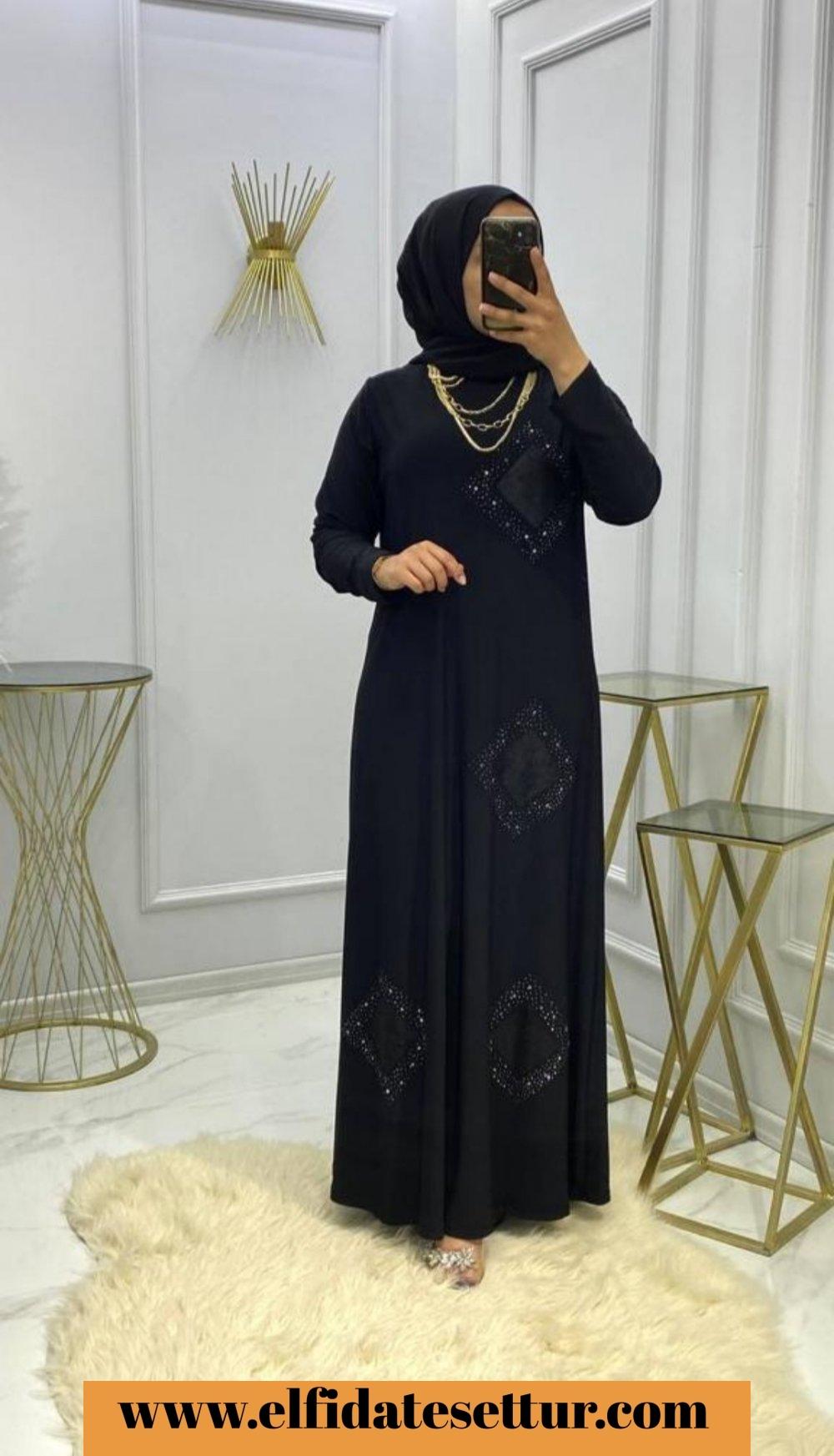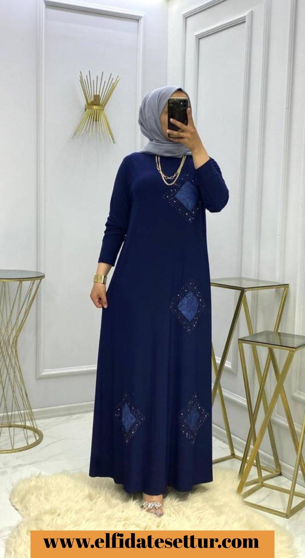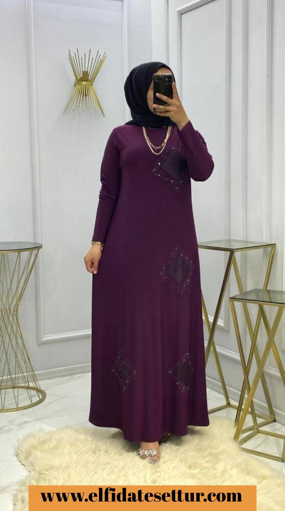 Muhteşem Taşlı Elbisemiz ❤️ Model kodu 1811 1 beden 40/42 2 beden 44/46 3 beden 48/50 4 beden 52/54 1.sınıf tilda sandy kumaş Boy 140 cm Mor, siyah, lacivert 3 renk