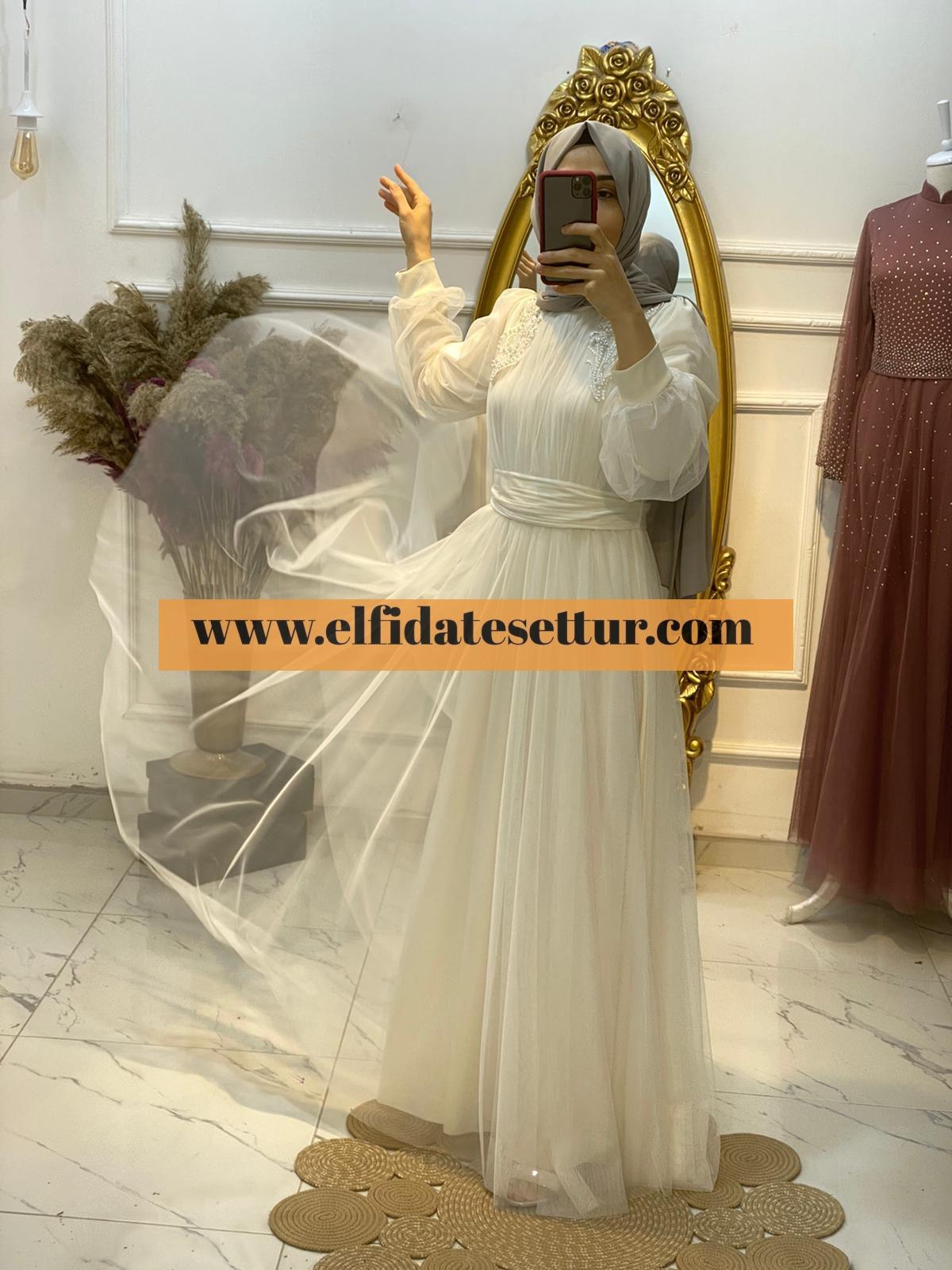 🍁Kumaş ; Omuzu Taşlı Astarlı Hayal Tül