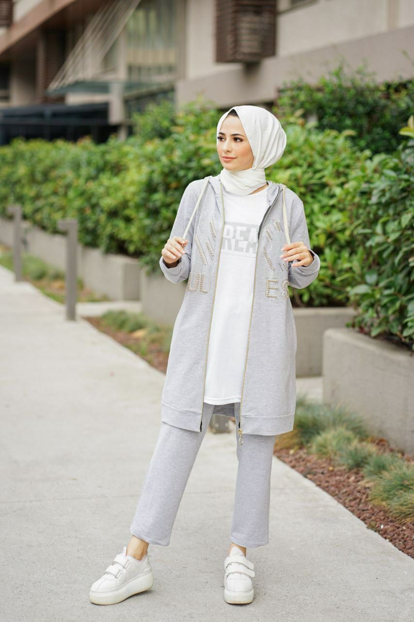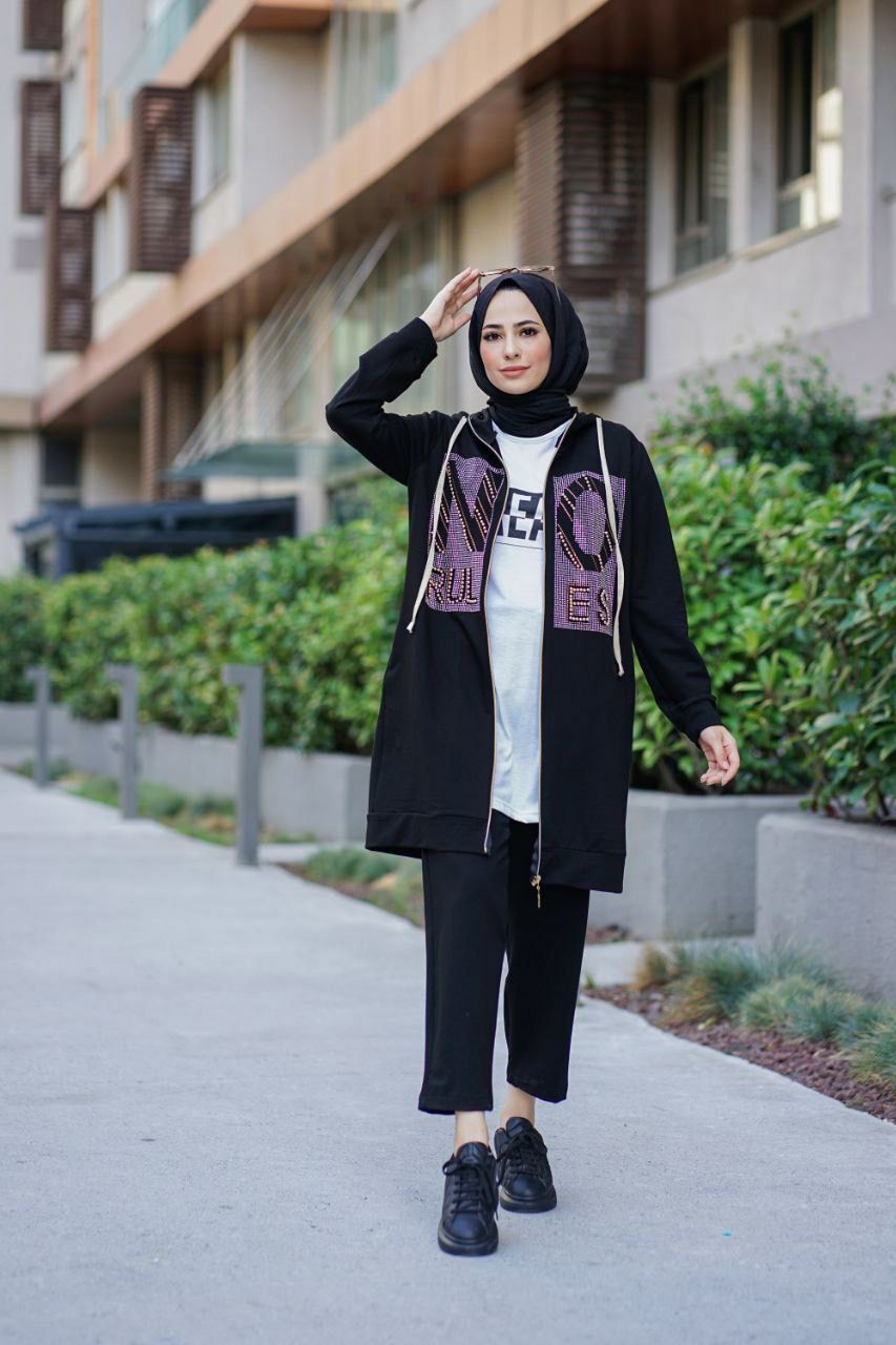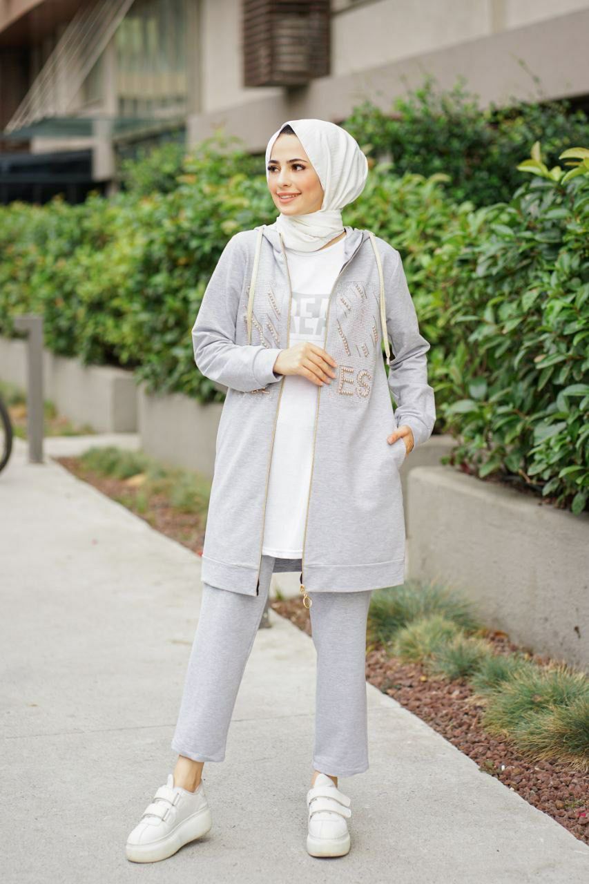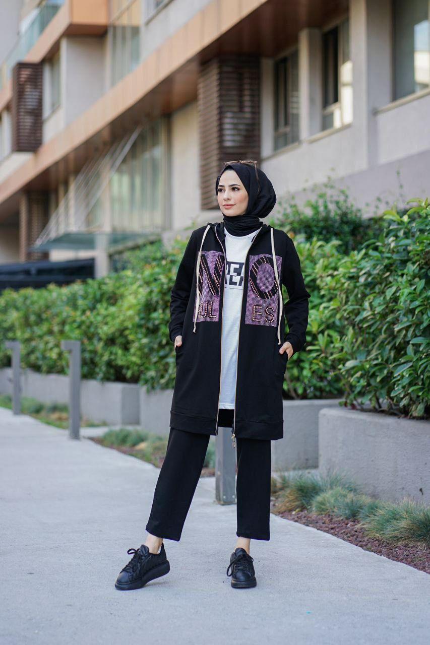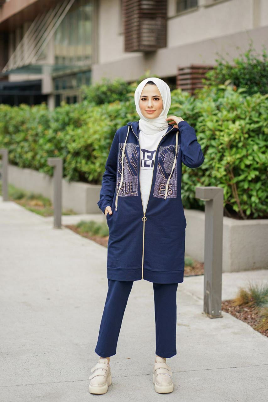 Ürün içeriği kapijonlu tam boy fermuarlı pantolon paça ve kol ağızları lastikli üçlü spor takım