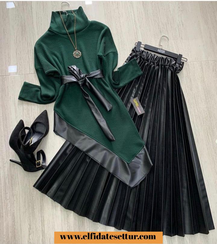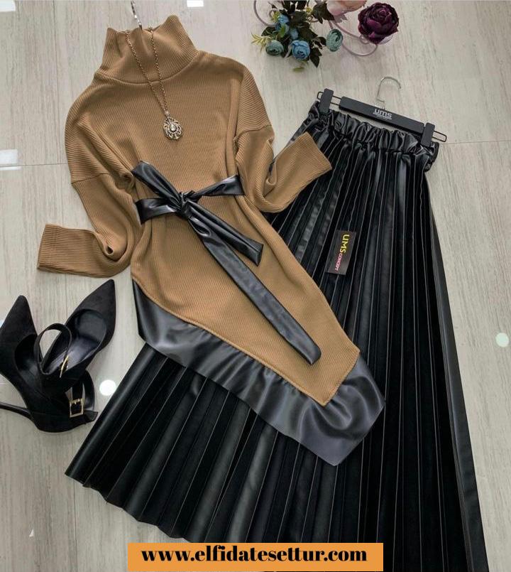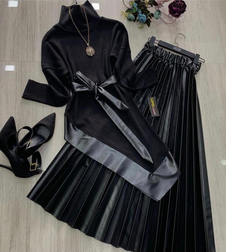 Deri Etekli Triko Takım (S)