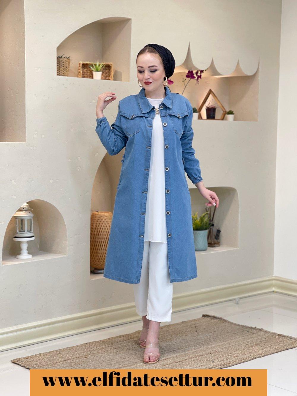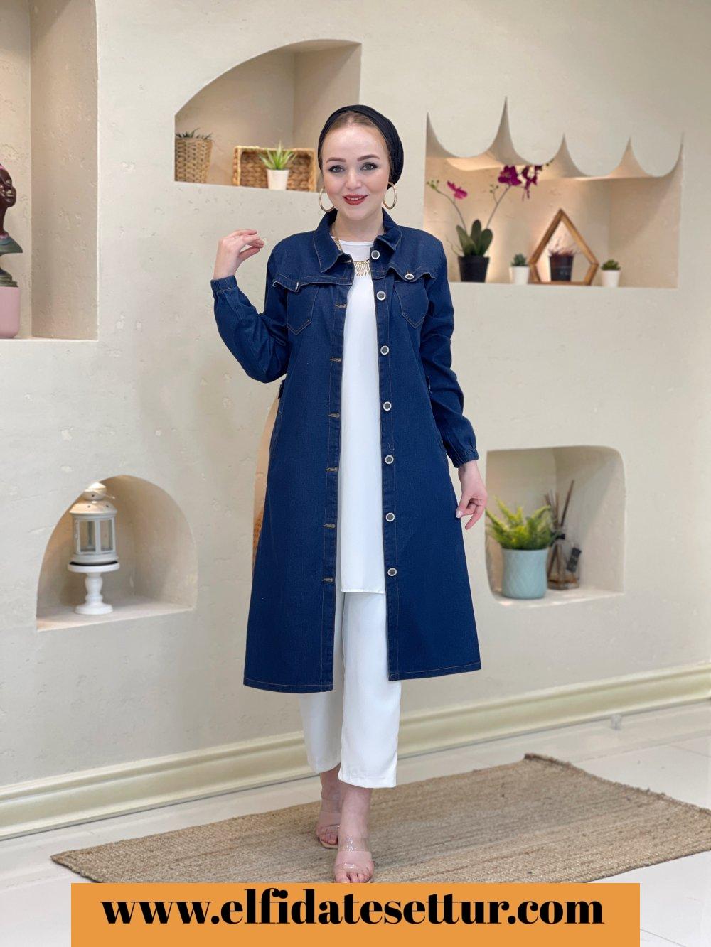 1. Sınıf Kot kumaştır. 38 Beden Ölçüsü: Ceket boy: 110 cm Göğüs: 104 cm Omuz: 42 cm Ceket boydan düğme detaylıdır.
