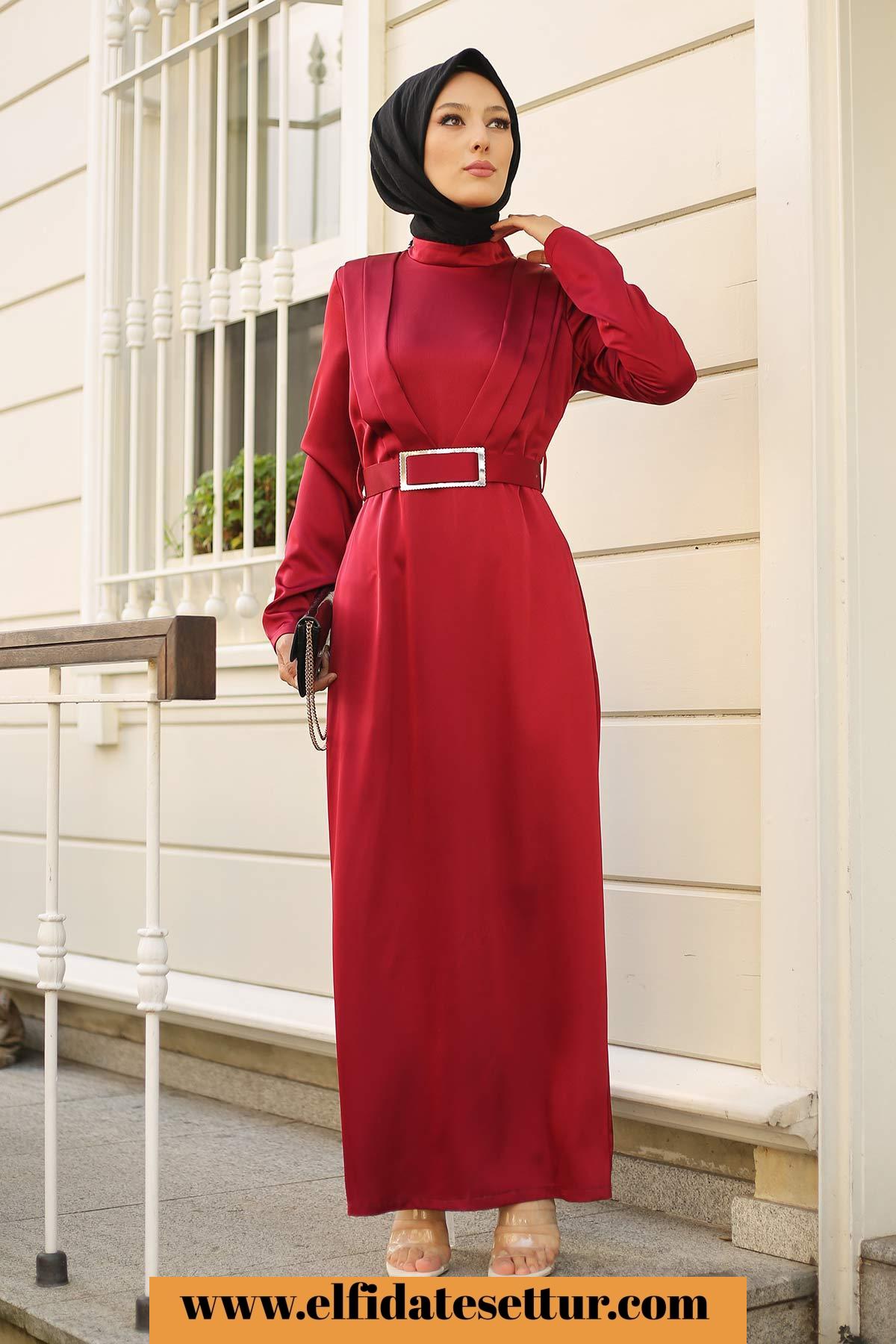 🌷Omuz Vatkalı Tesettür Saten Kalem Abiye