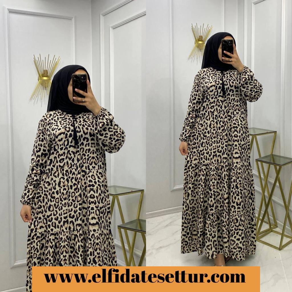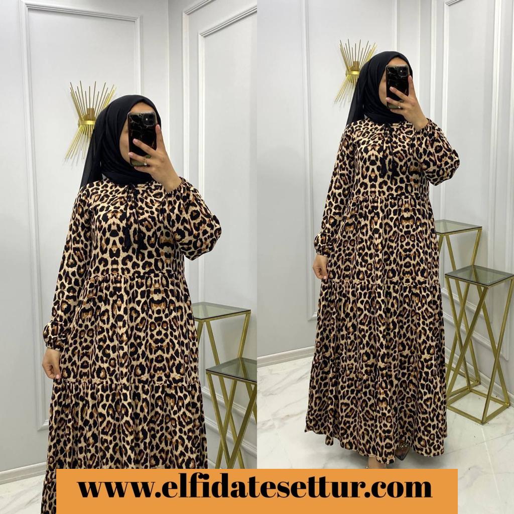 kodu 1675 (NV) Zerrin leopar elbise