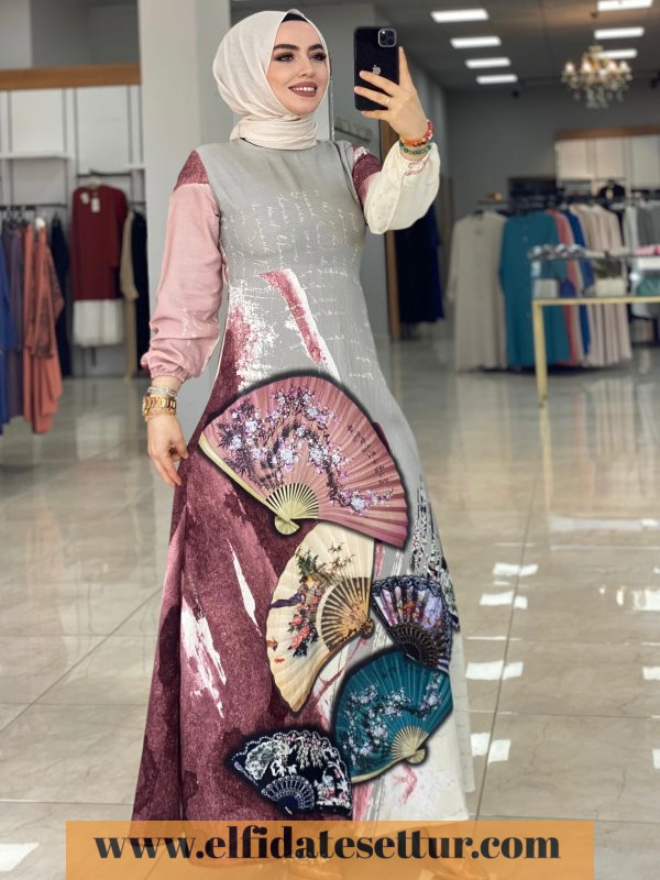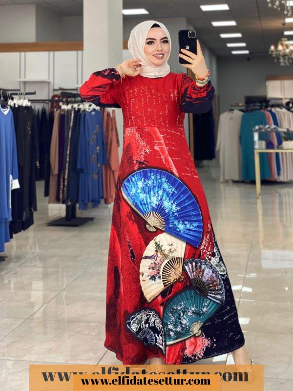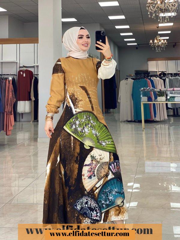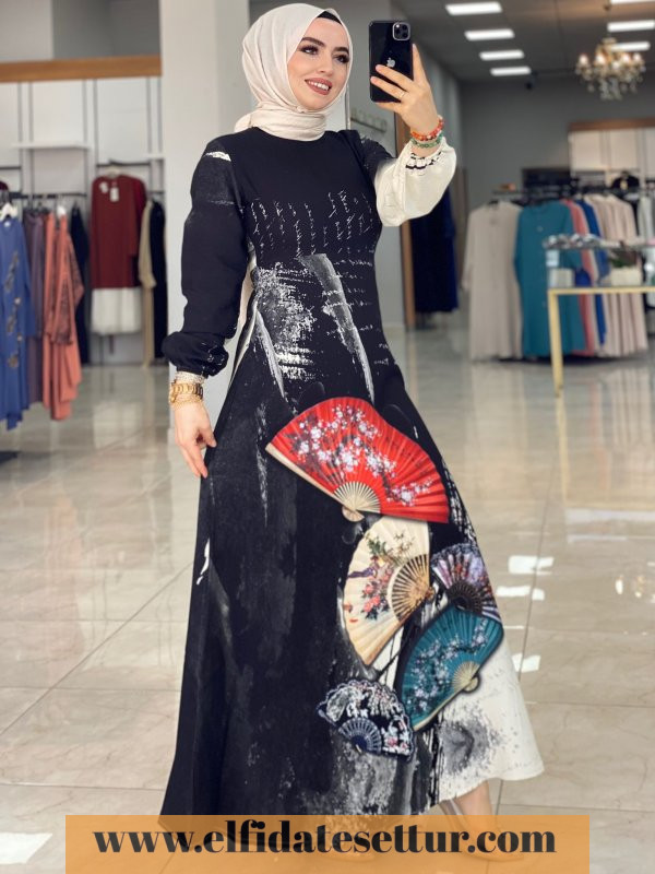 Yelpaze Desenli Elbise