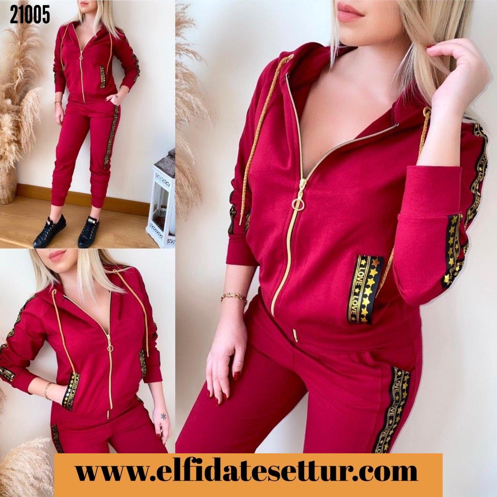 ❤️ Yanı yıldız baskı kapşonlu fermuarlı takım