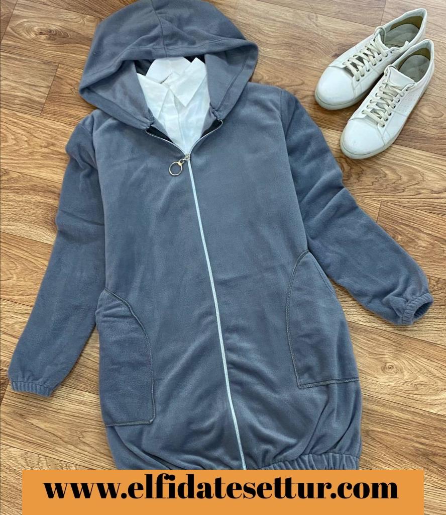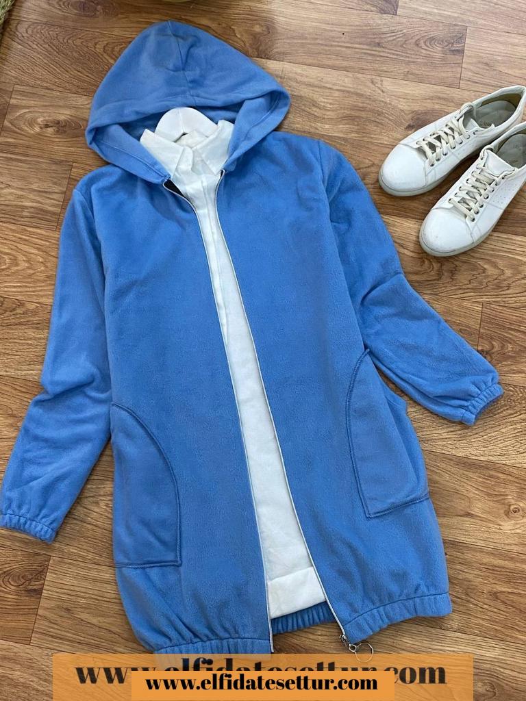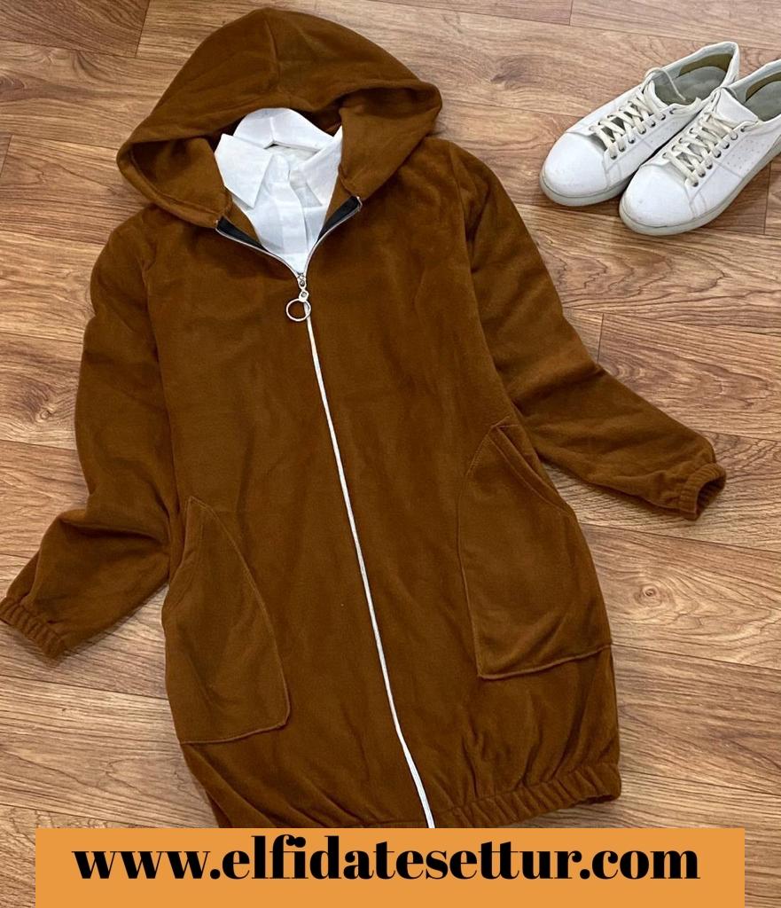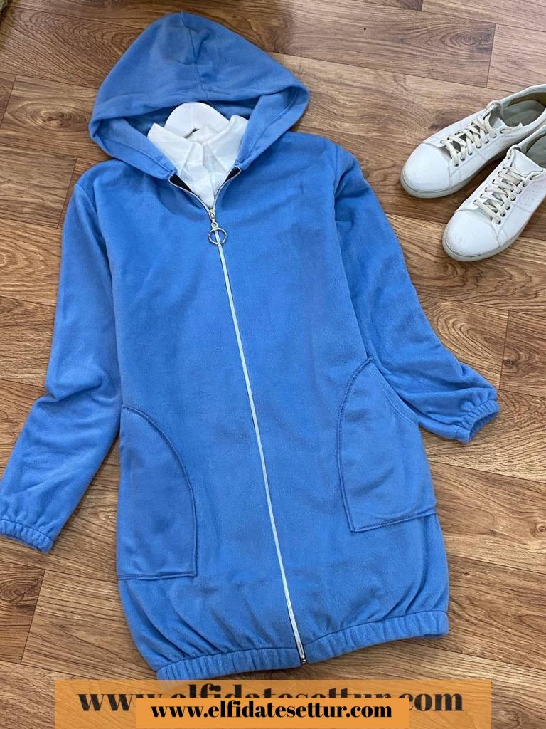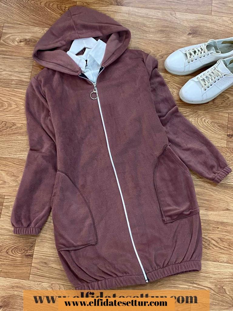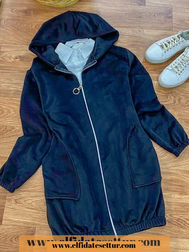 Boy 82 cm, kapşonlu cepli boydan fermuarlı