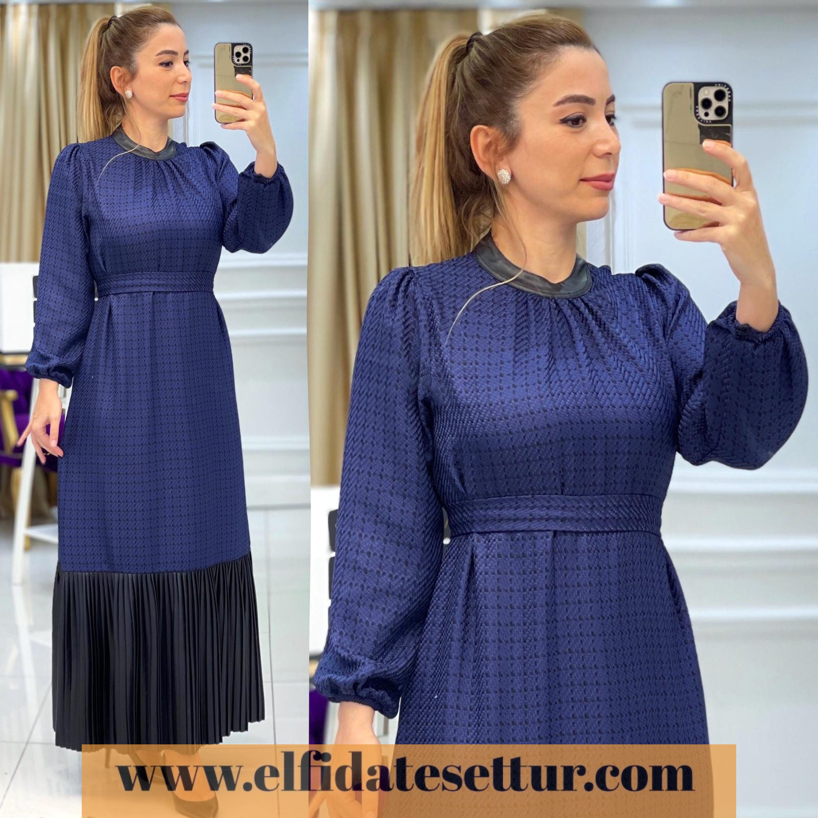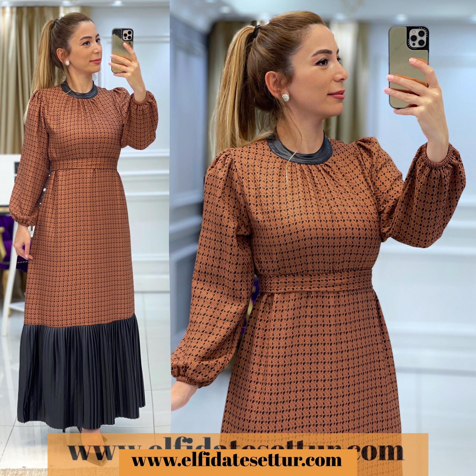 Ürün bilgileri: Birinci Sınıf Yünefekt kumaştır. Elbise etek uçları piliseli deri detaylıdır. Seyyar kuşaklıdır.