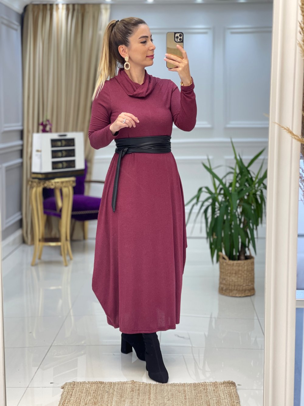 Ürün bilgileri:Birinci Sınıf Zara Yün Viskon kumaştır. Esnek kumaştır. Deri seyyar kuşaklıdır.